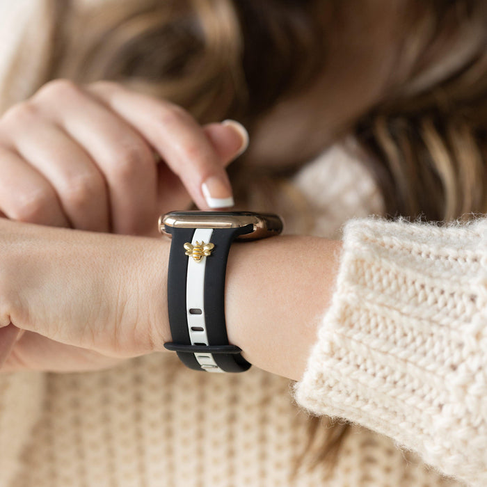This band is designer-esque, comfiest silicone with the cutest, delicate charm options in gold, rose gold, or silver.