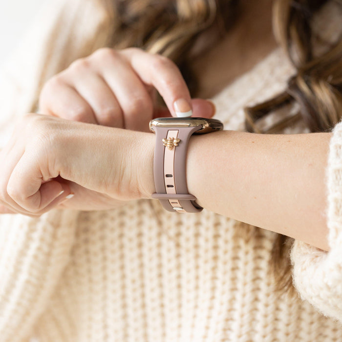 This band is designer-esque, comfiest silicone with the cutest, delicate charm options in gold, rose gold, or silver.