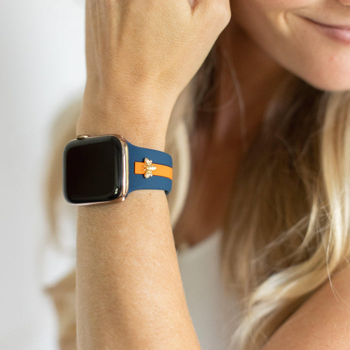 This band is designer-esque, comfiest silicone with the cutest, delicate charm options in gold, rose gold, or silver.