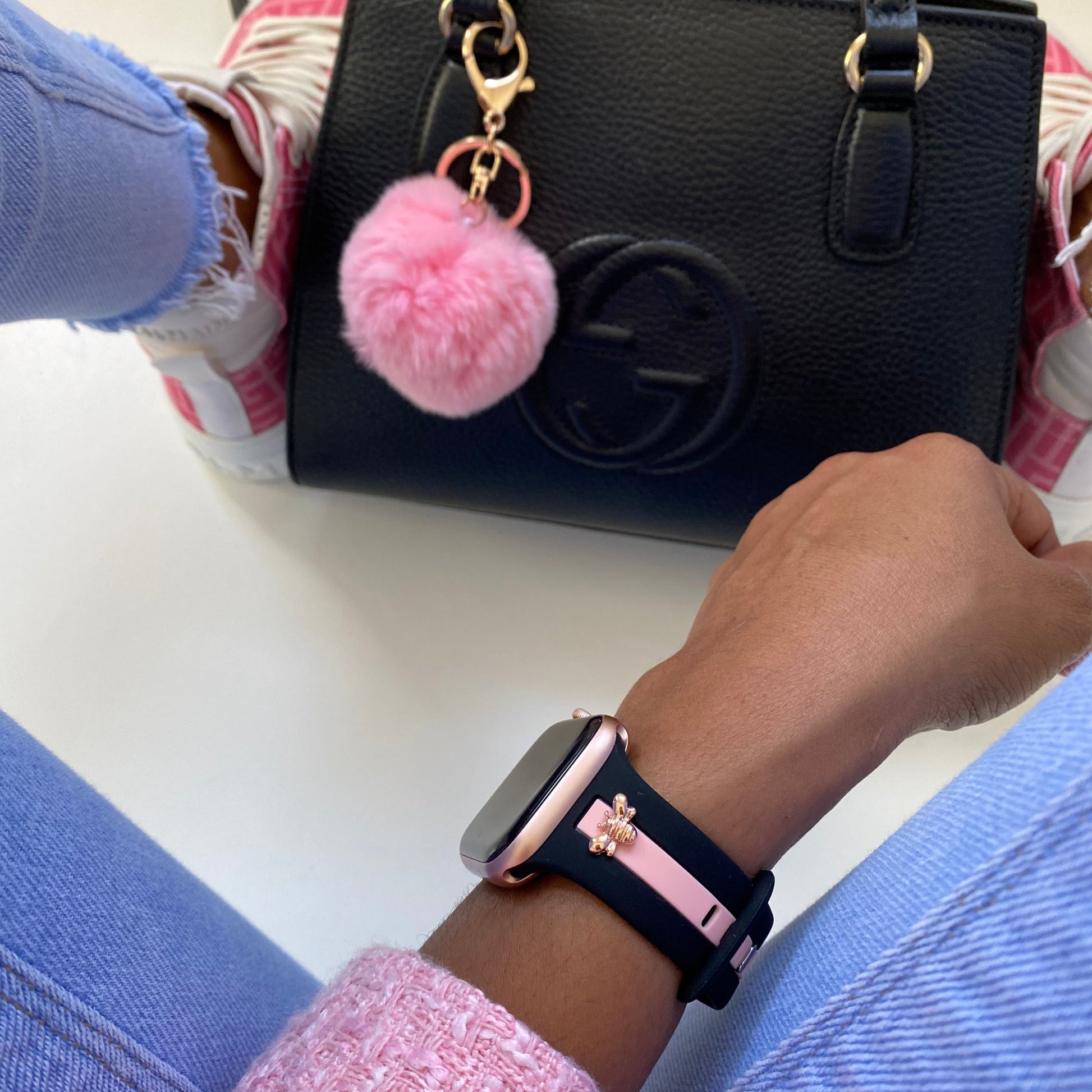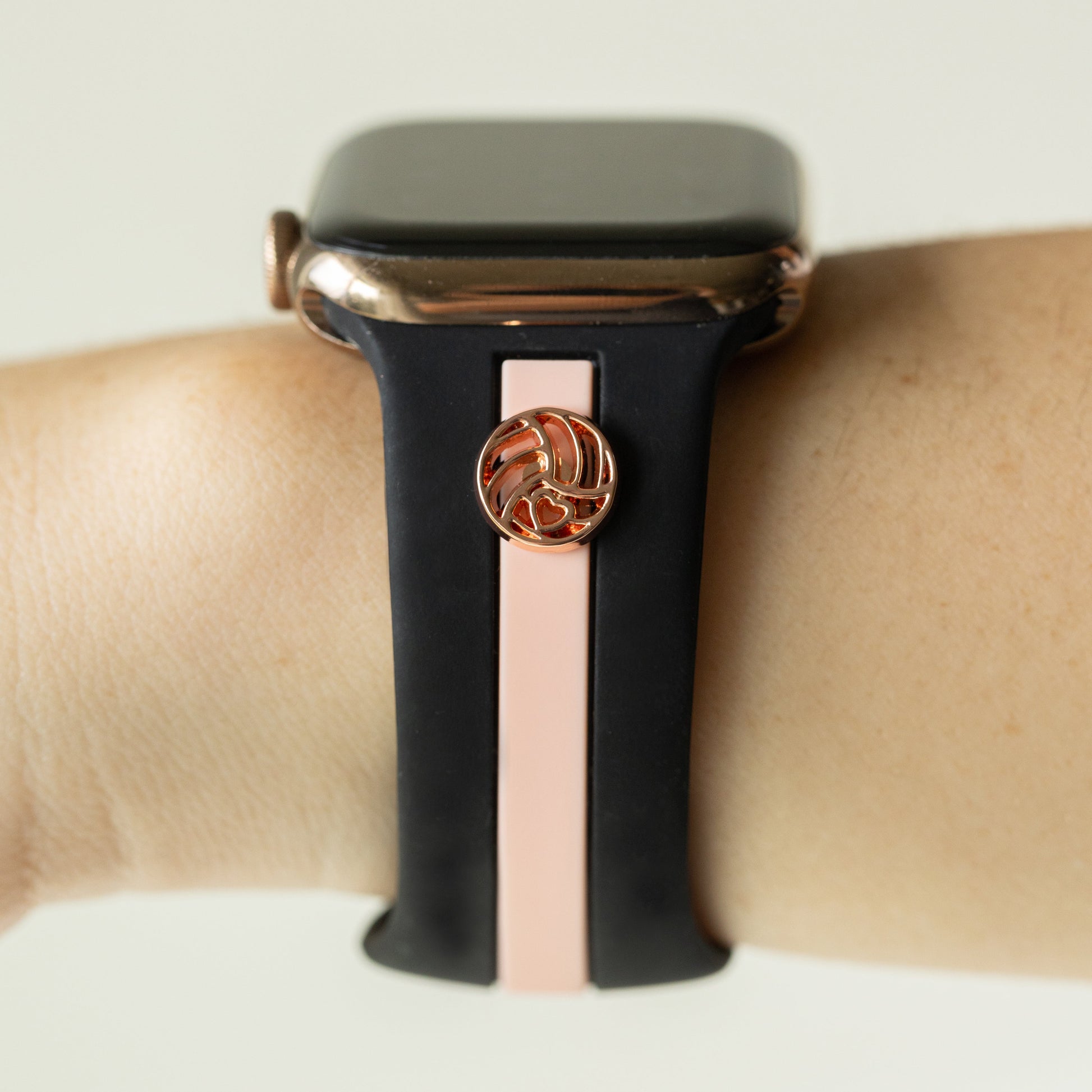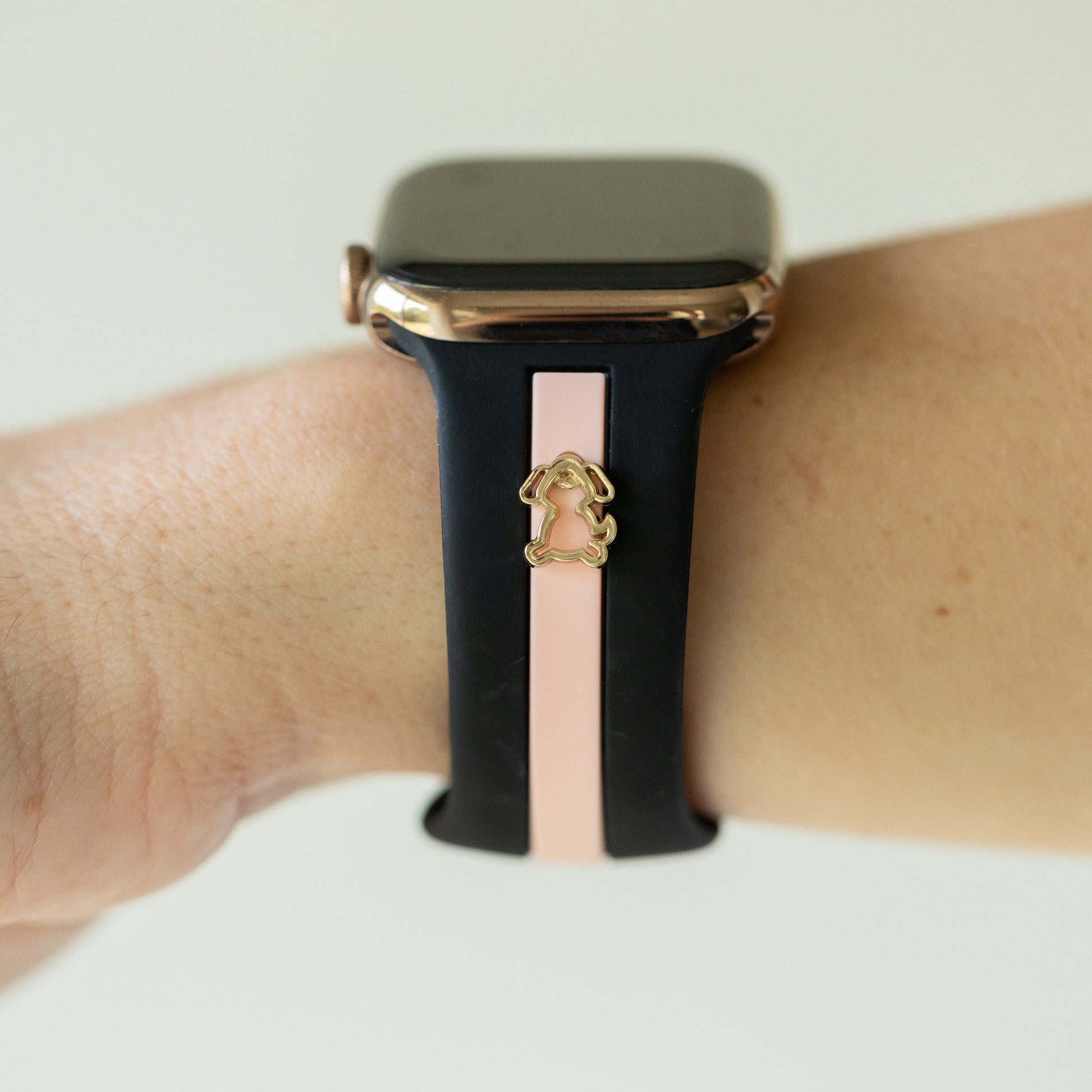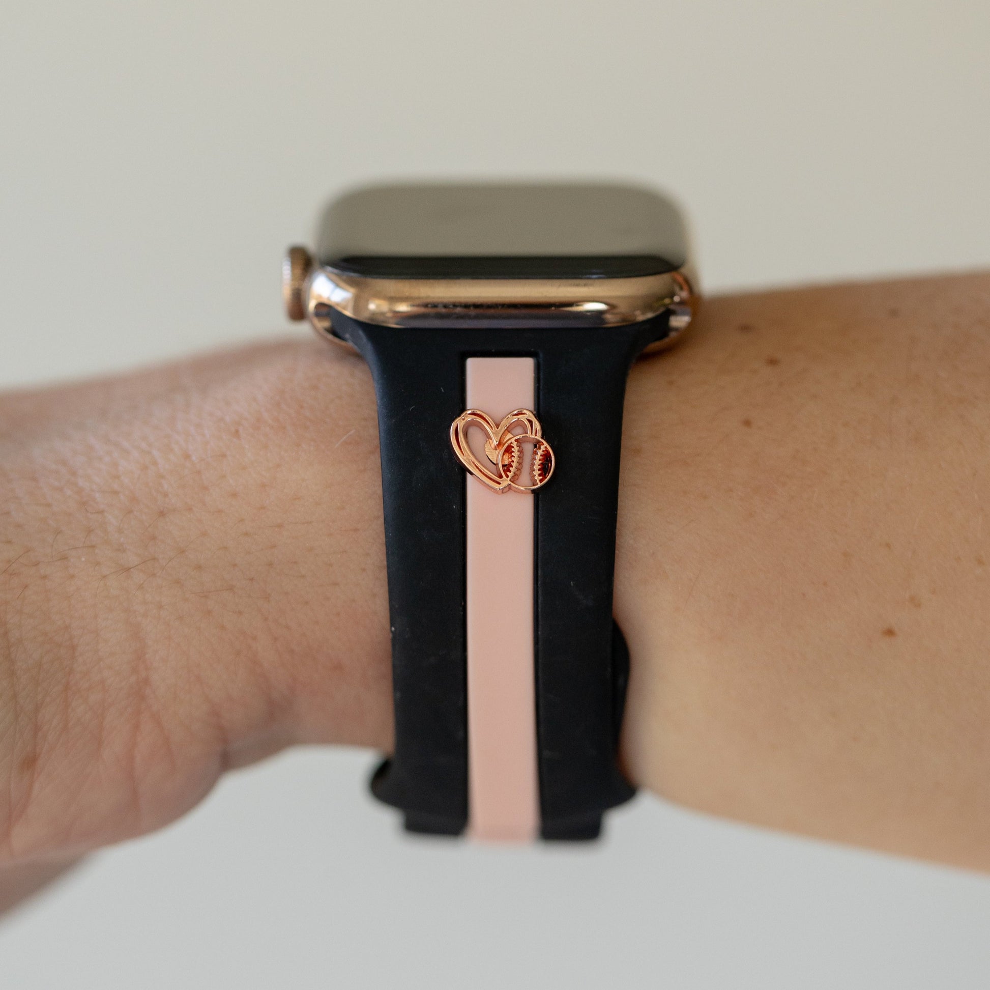 This band is designer-esque, comfiest silicone with the cutest, delicate charm options in gold, rose gold, or silver.
