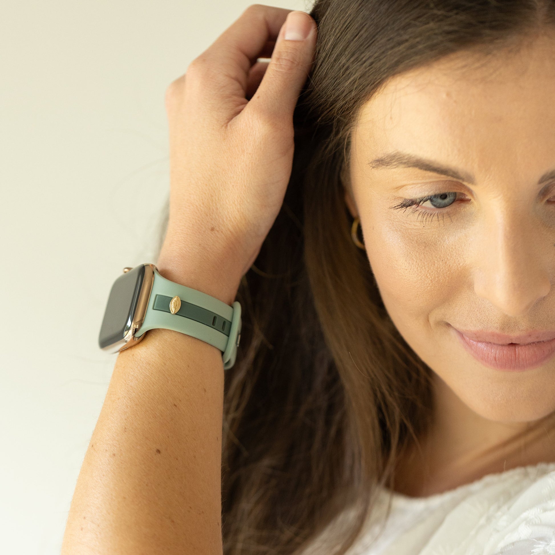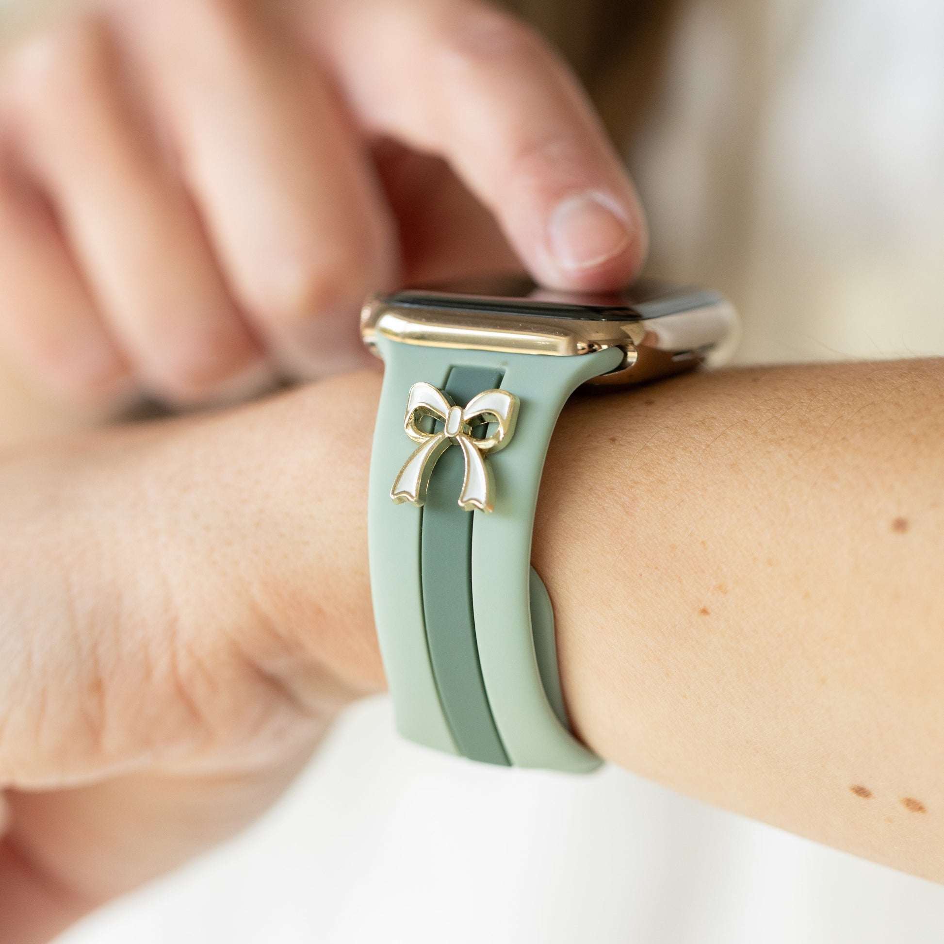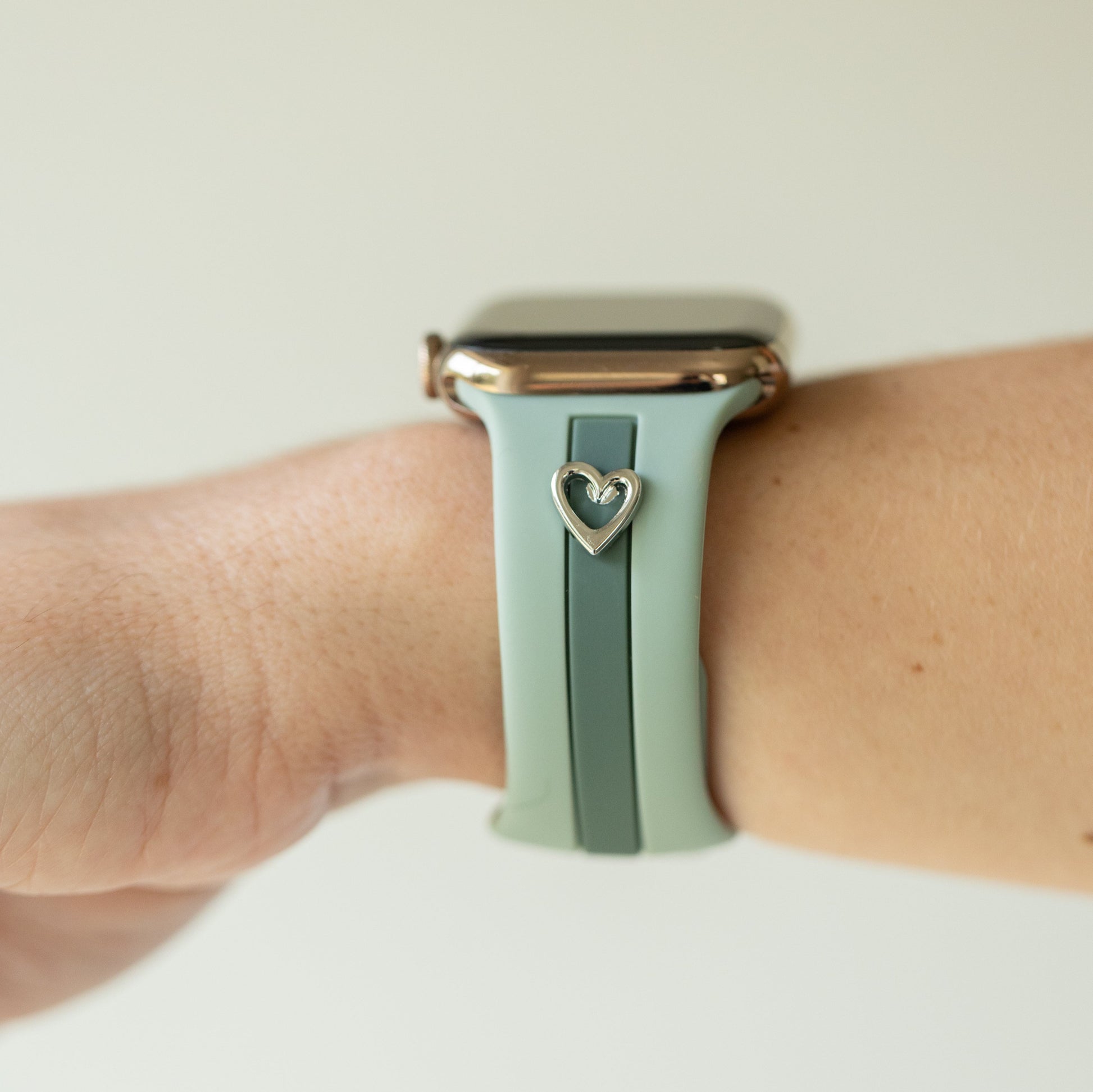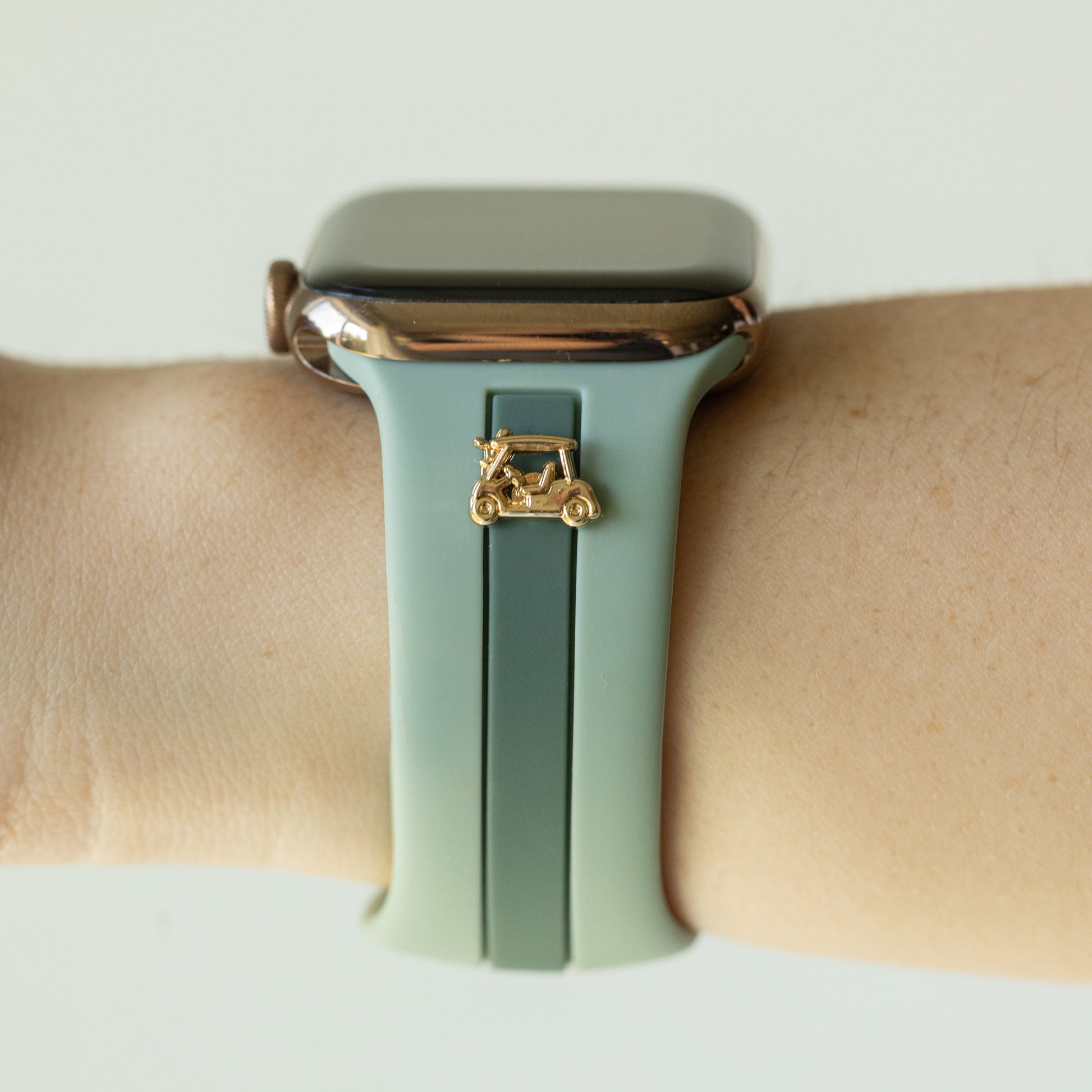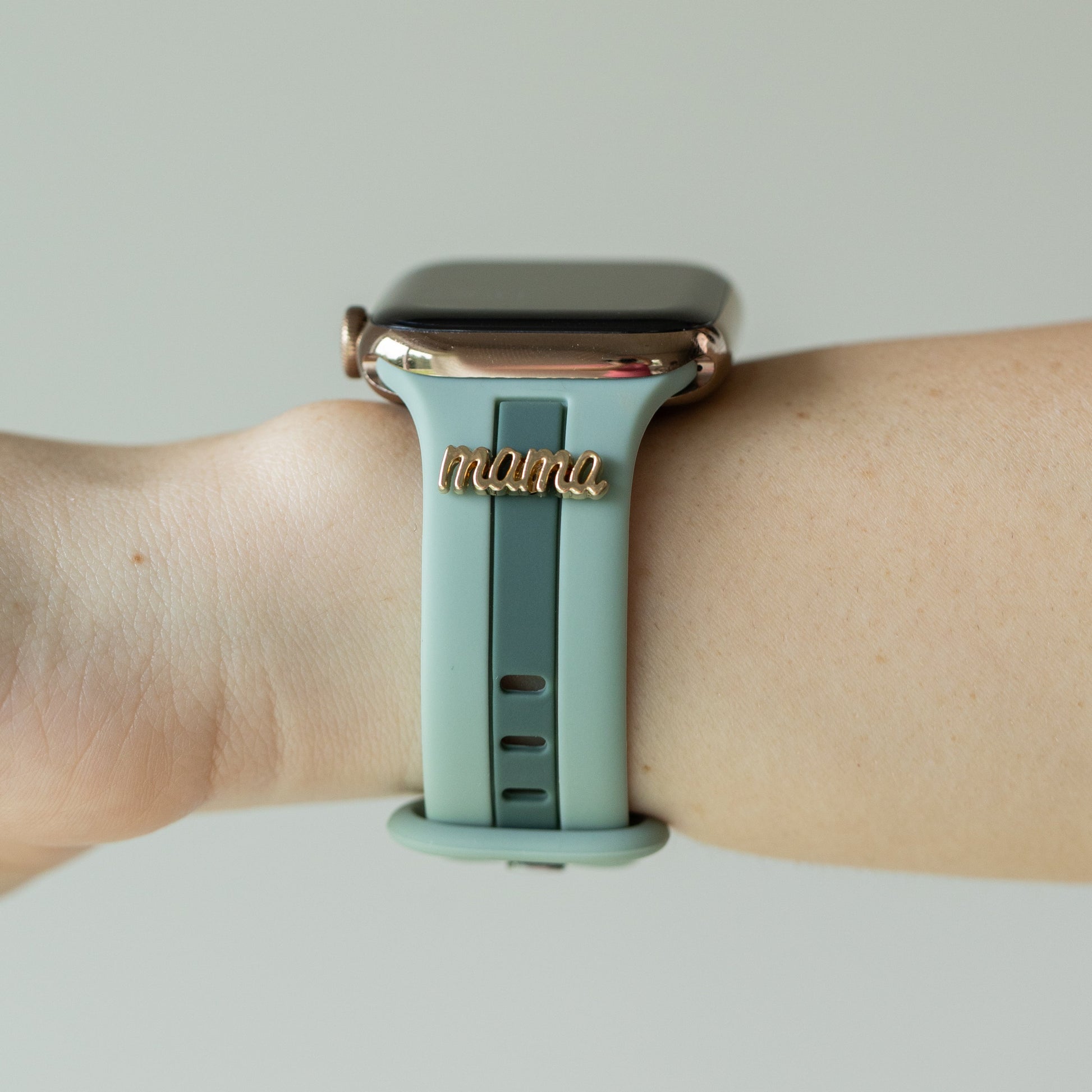 This band is designer-esque, comfiest silicone with the cutest, delicate charm options in gold, rose gold, or silver.
