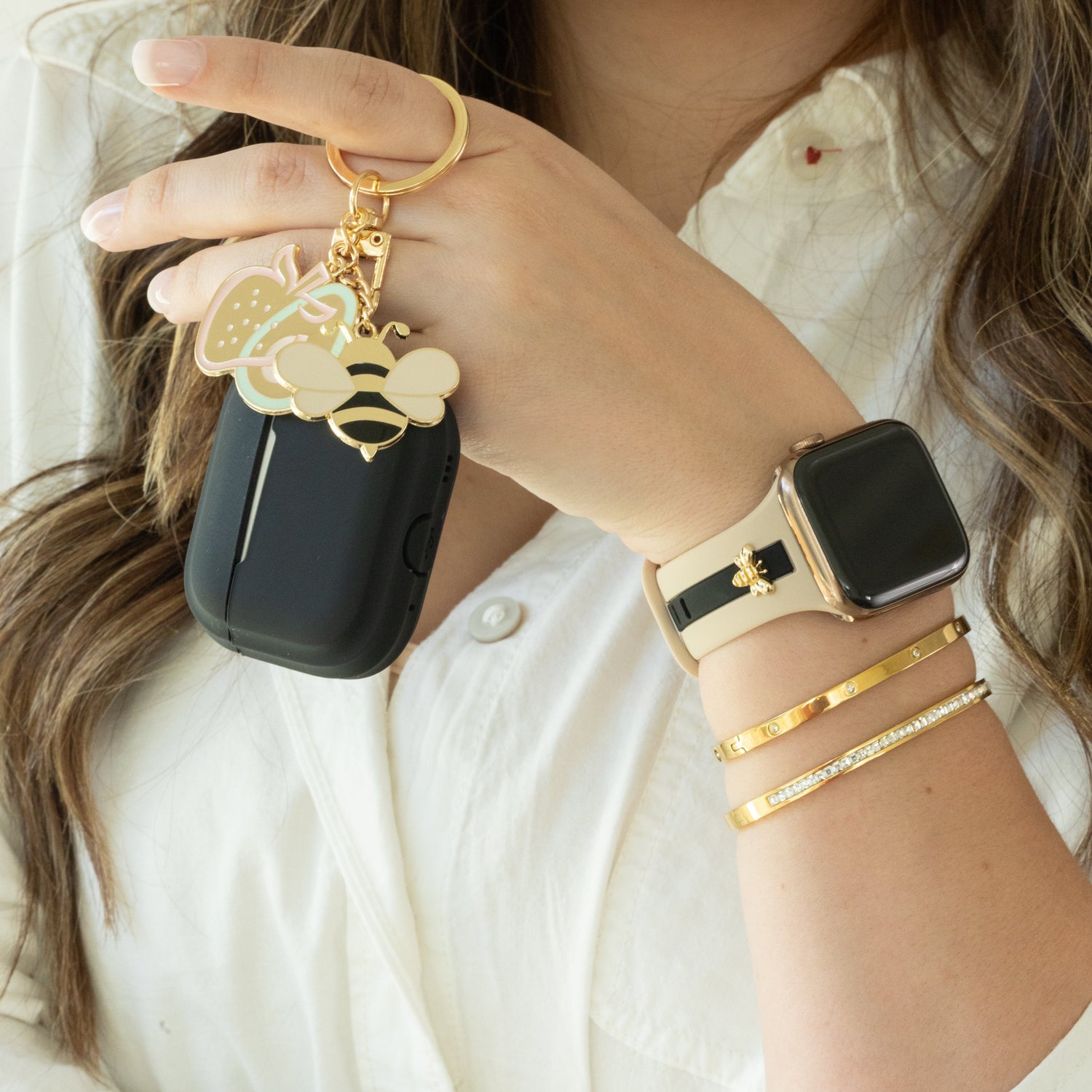 This Apple Watch band features our original molded band (nothing painted on printed on) high quality, soft, comfortable and beautifullll! You have a choice of a pair of butterfly charms in either gold, silver or rose gold finish.