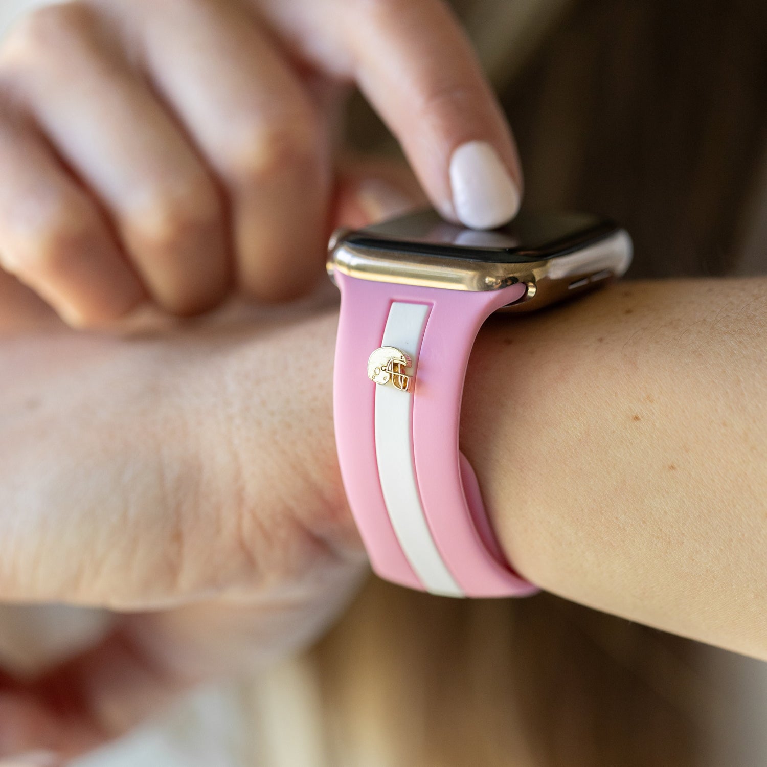There’s no other way to support your team than with a unique, classy touch on your wrist. Our Football Fever band is a molded dual-color silicone band. It’s a high-quality Apple Watch Band with exquisitely detailed football helmet charms on one side or the cutest footballs. Switch out your Apple Watch Band and support your team!!