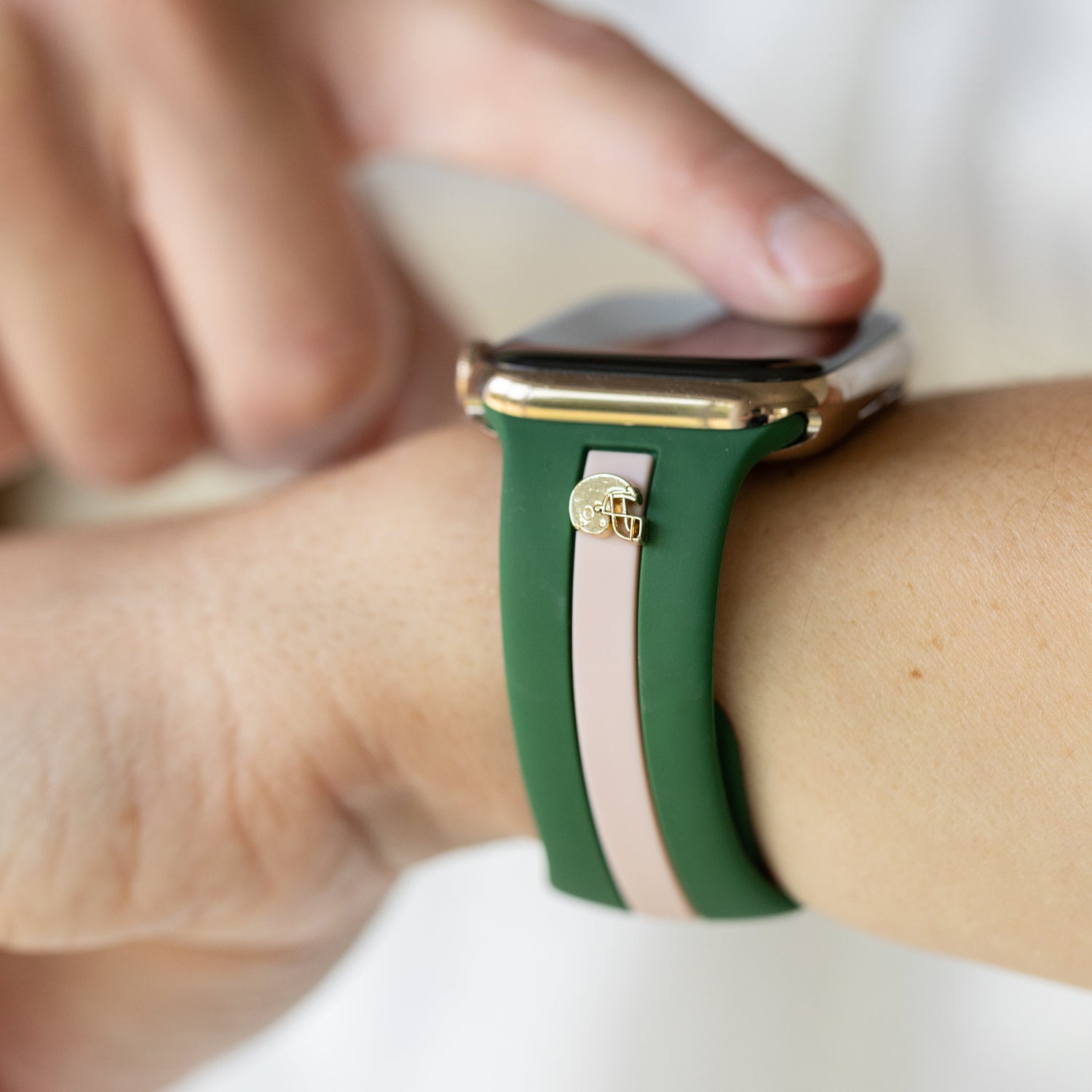 There’s no other way to support your team than with a unique, classy touch on your wrist. Our Football Fever band is a molded dual-color silicone band. It’s a high-quality Apple Watch Band with exquisitely detailed football helmet charms on one side or the cutest footballs. Switch out your Apple Watch Band and support your team!!