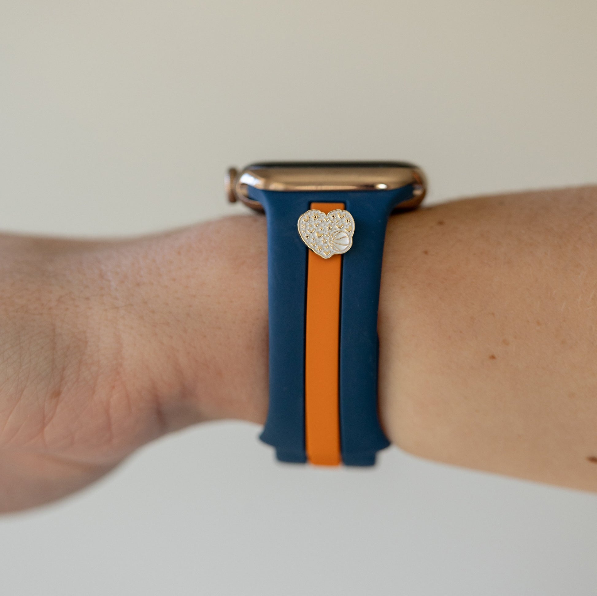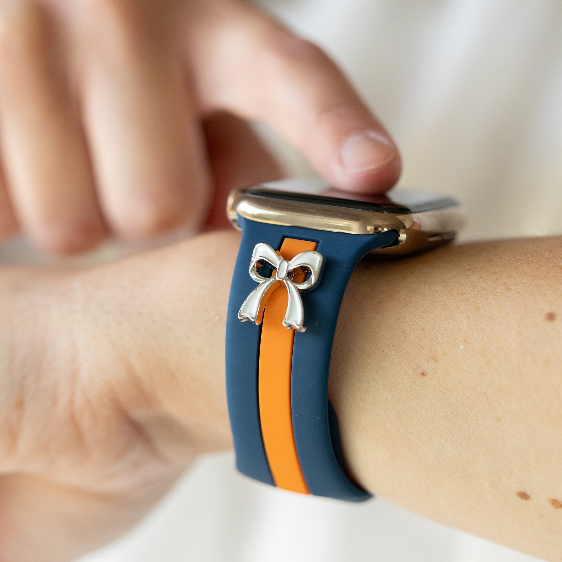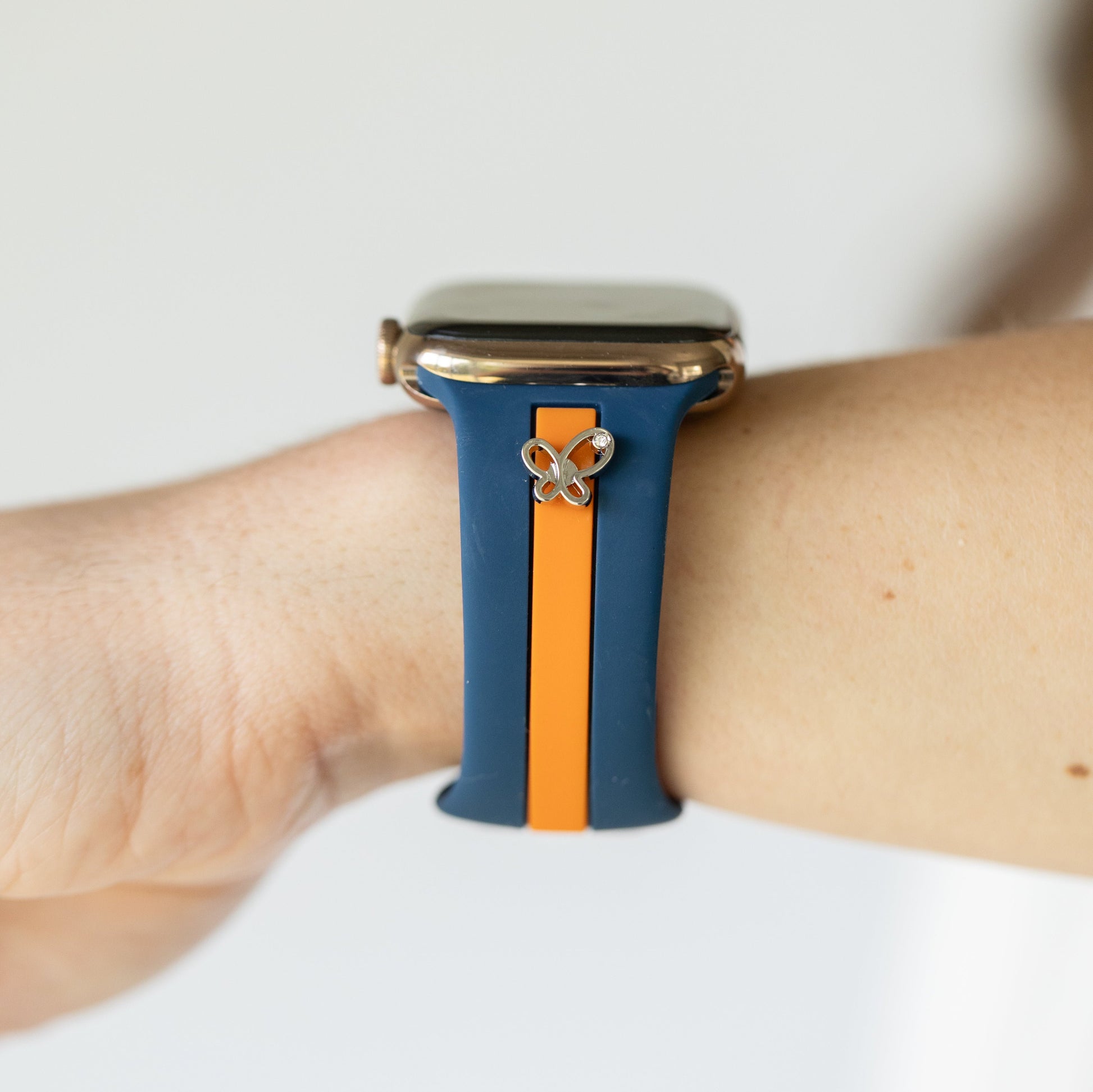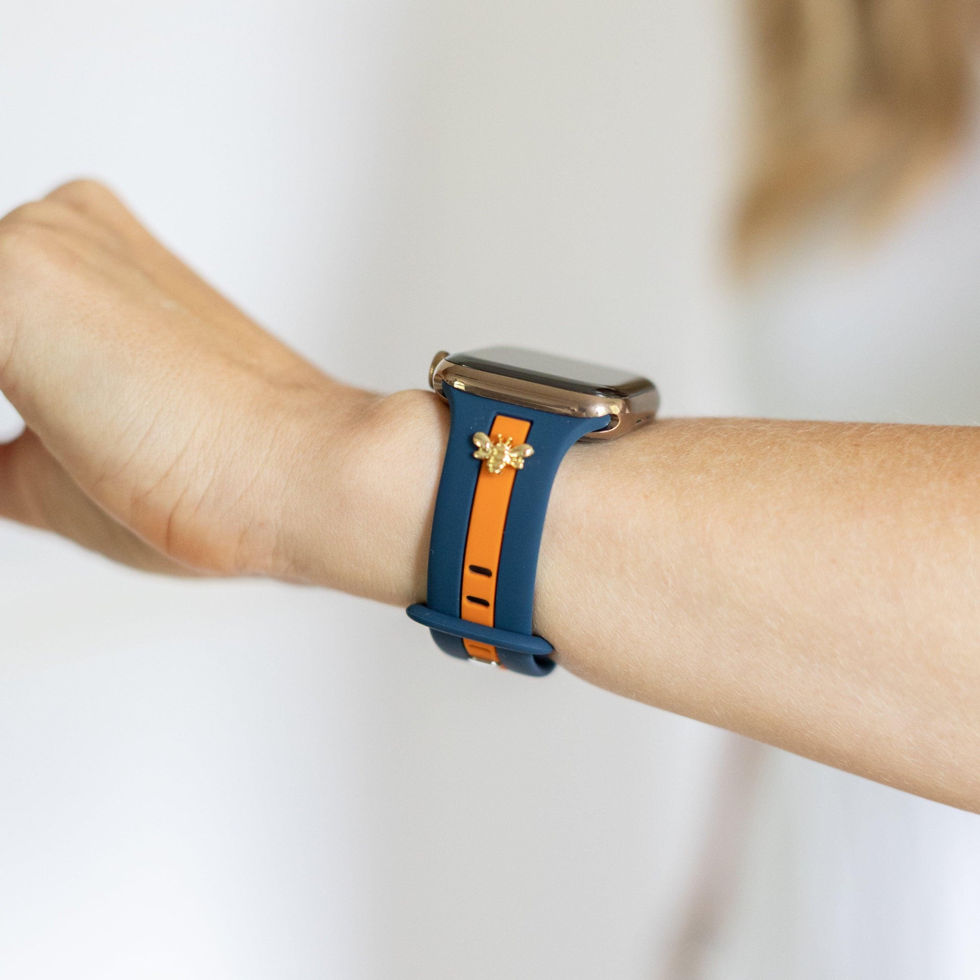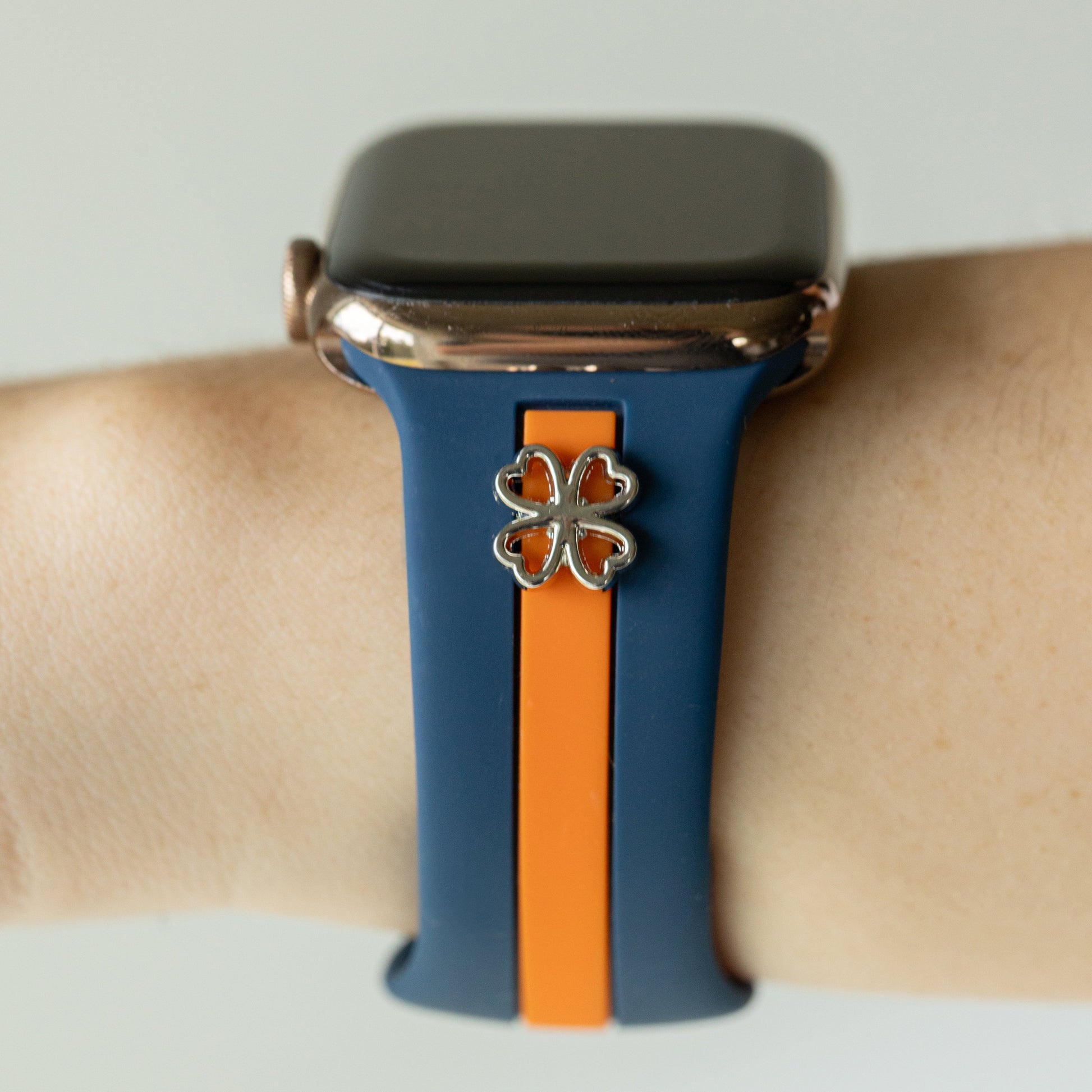 This band is designer-esque, comfiest silicone with the cutest, delicate charm options in gold, rose gold, or silver.