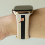 This Apple Watch band features our original molded band (nothing painted on printed on) high quality, soft, comfortable and beautifullll! You have a choice of a pair of dainty white bow charms in either gold, silver or rose gold finish.