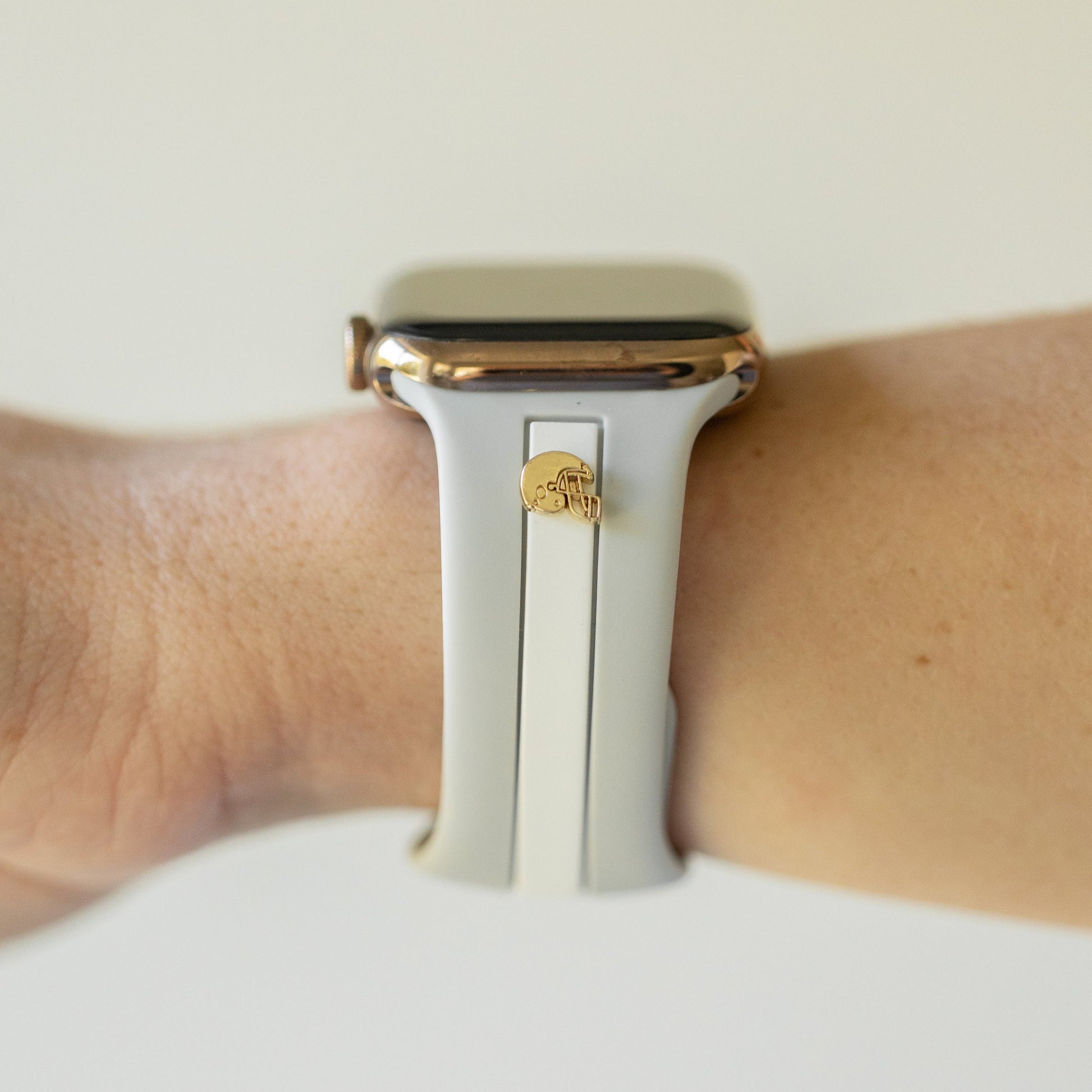 There’s no other way to support your team than with a unique, classy touch on your wrist. Our Football Fever band is a molded dual-color silicone band. It’s a high-quality Apple Watch Band with exquisitely detailed football helmet charms on one side or the cutest footballs. Switch out your Apple Watch Band and support your team!!
