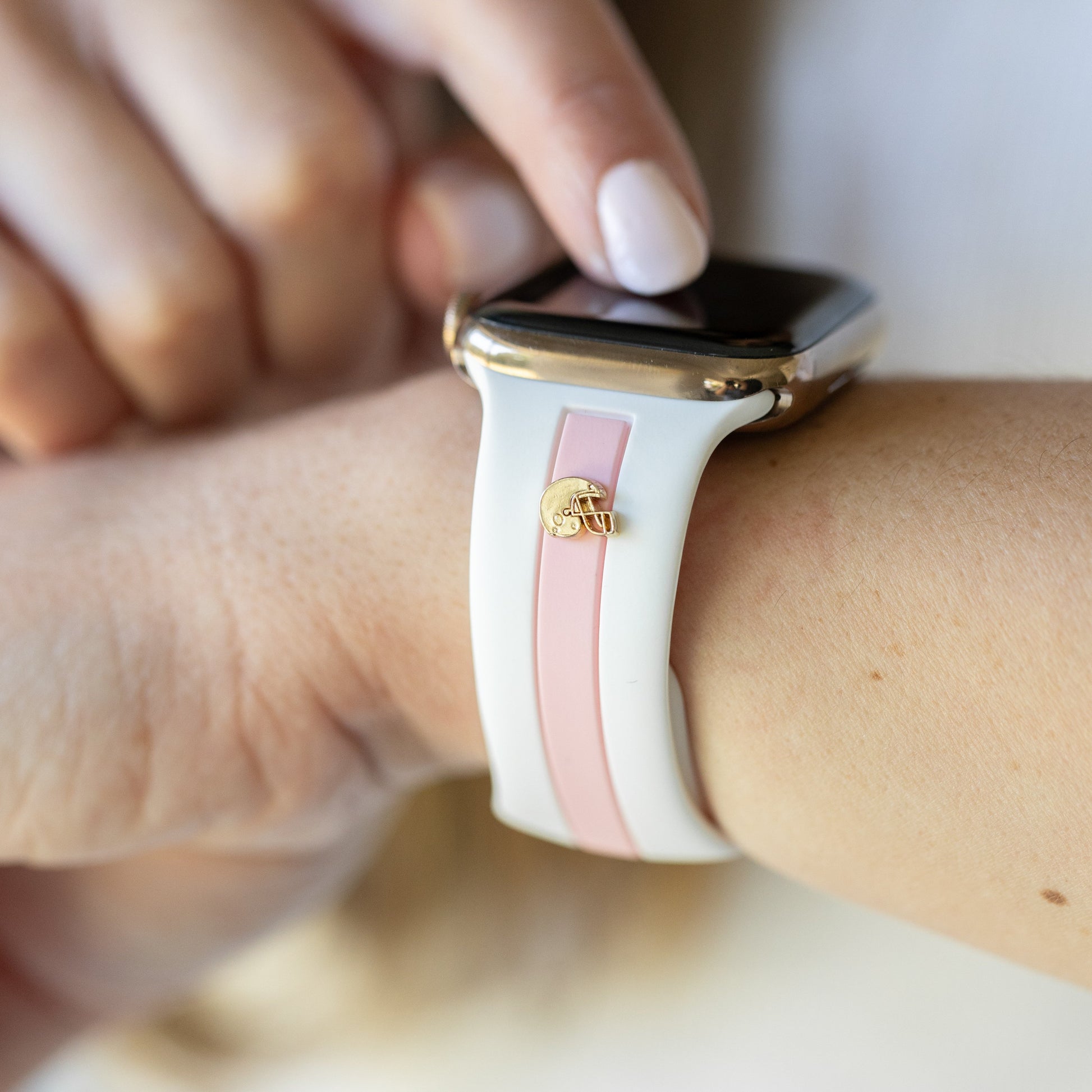 There’s no other way to support your team than with a unique, classy touch on your wrist. Our Football Fever band is a molded dual-color silicone band. It’s a high-quality Apple Watch Band with exquisitely detailed football helmet charms on one side or the cutest footballs. Switch out your Apple Watch Band and support your team!!