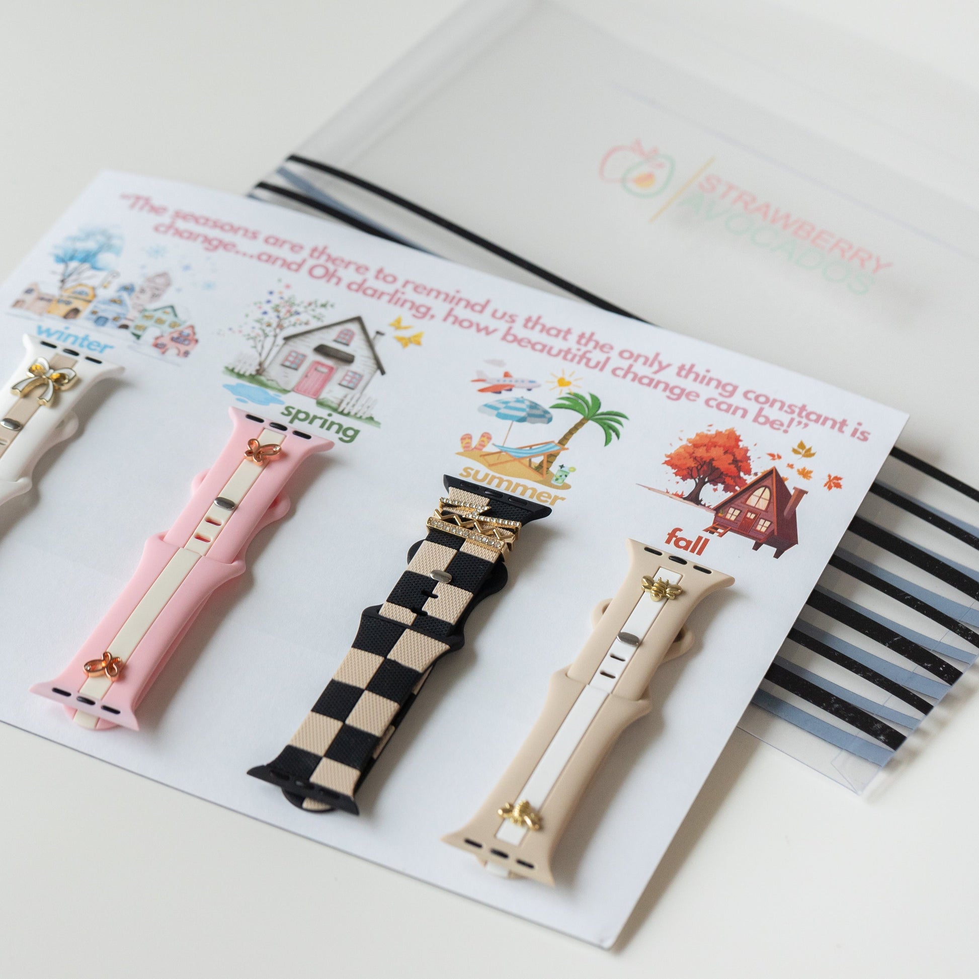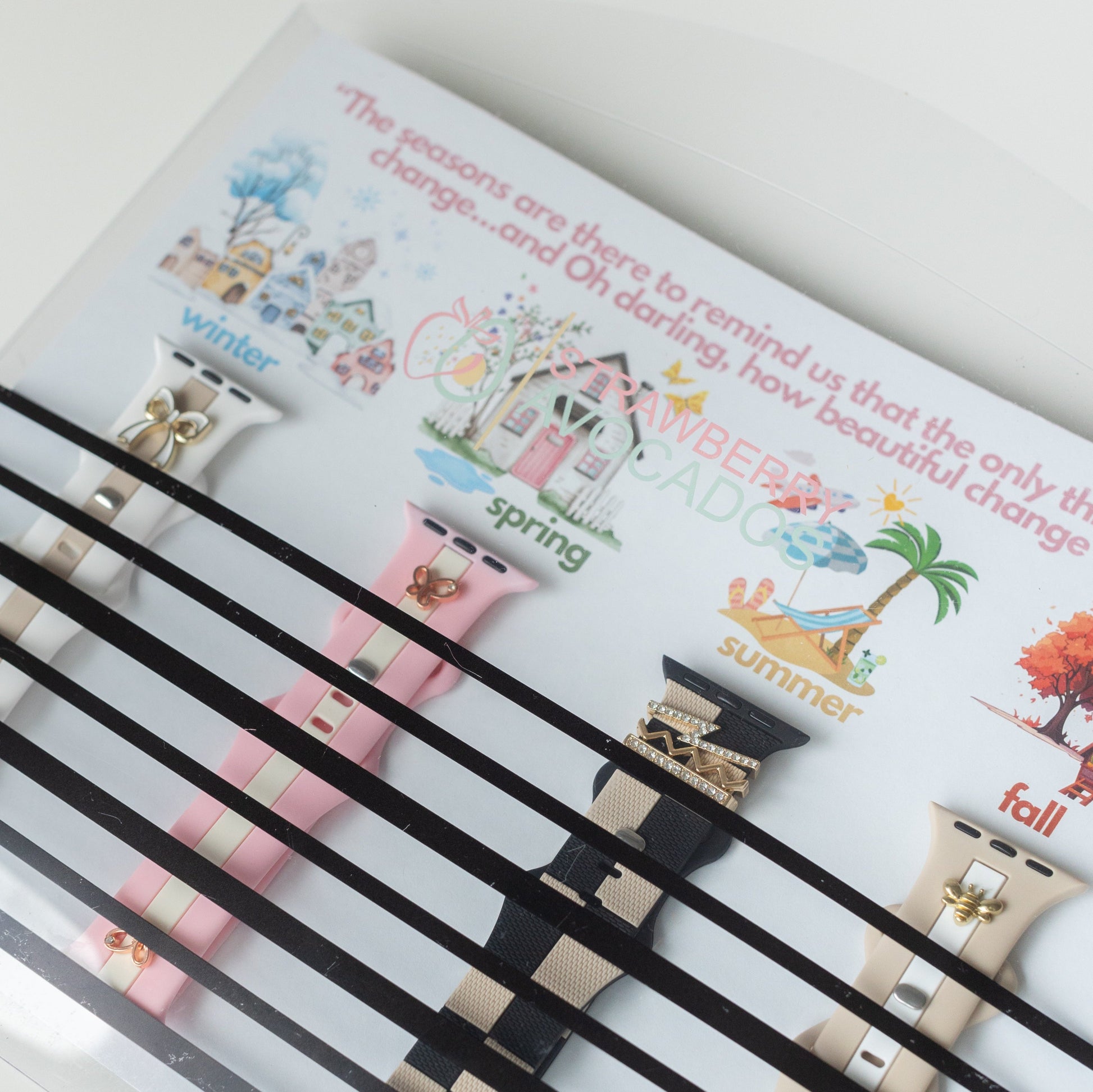 This listing is for the Seasonal Calendar, which comes in a high quality transparent case as pictured. Glue dots secure each watchband in place. Watchbands are sold separately and are not included.