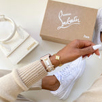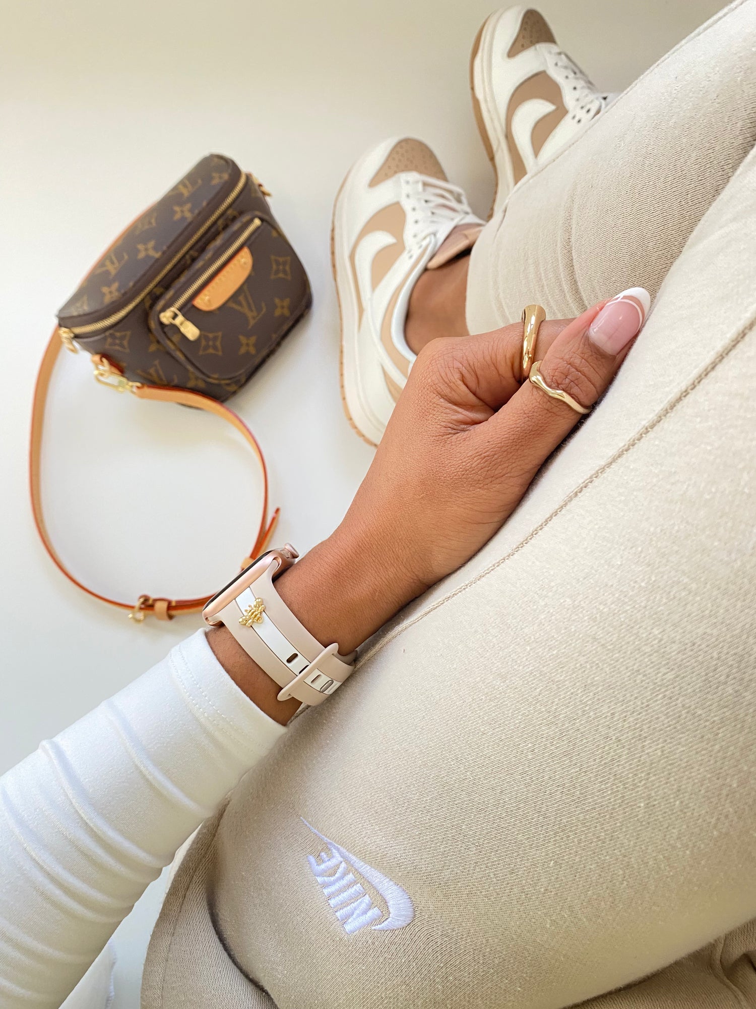 This band is designer-esque, comfiest silicone with the cutest, delicate charm options in gold, rose gold, or silver.
