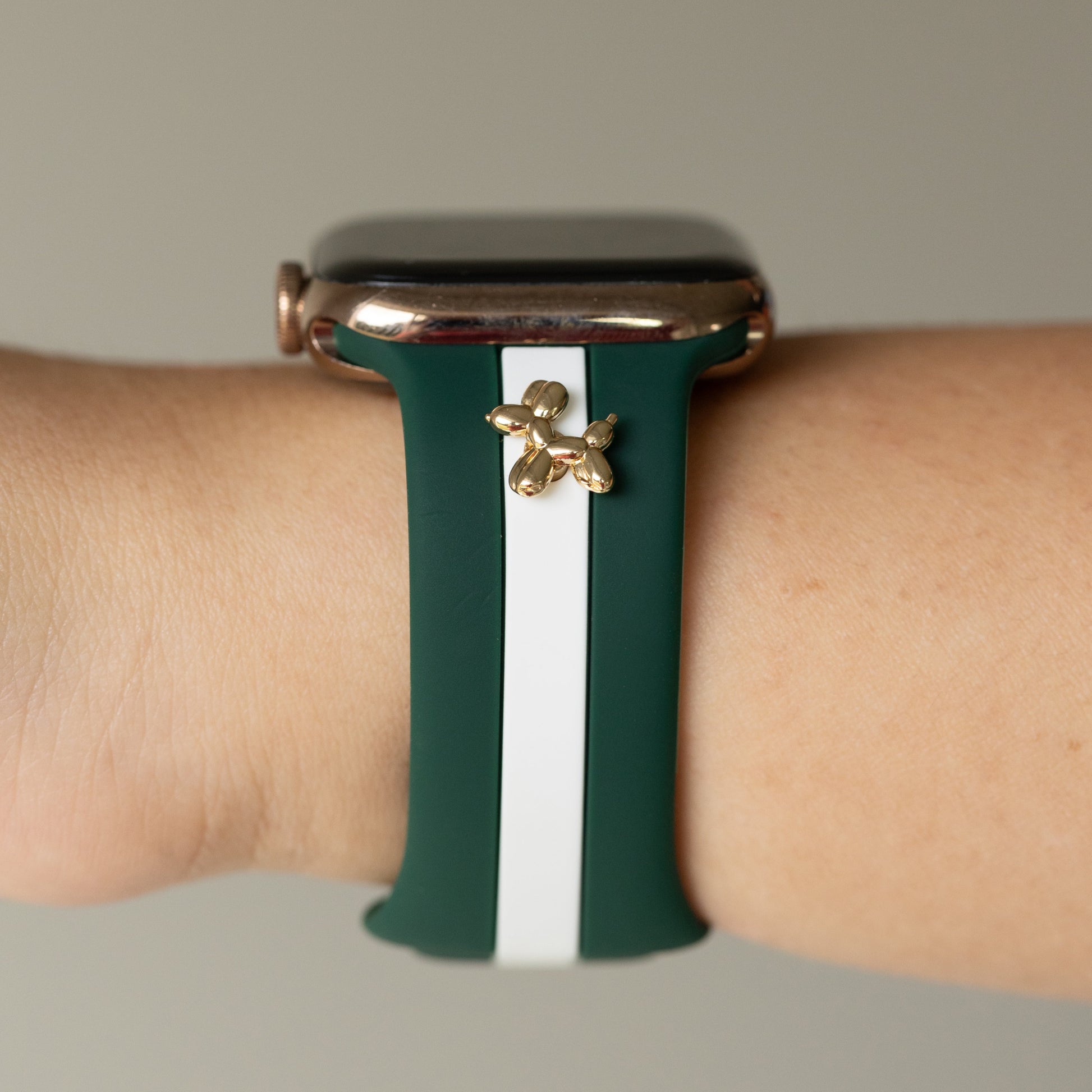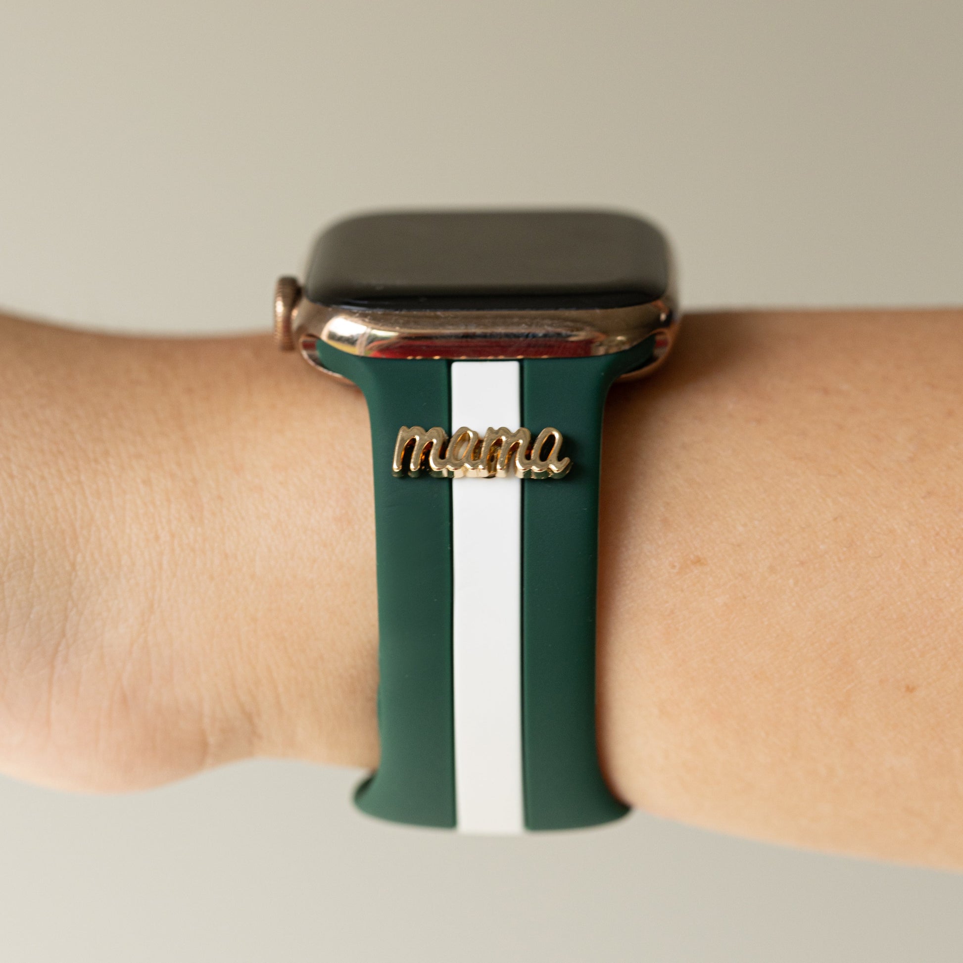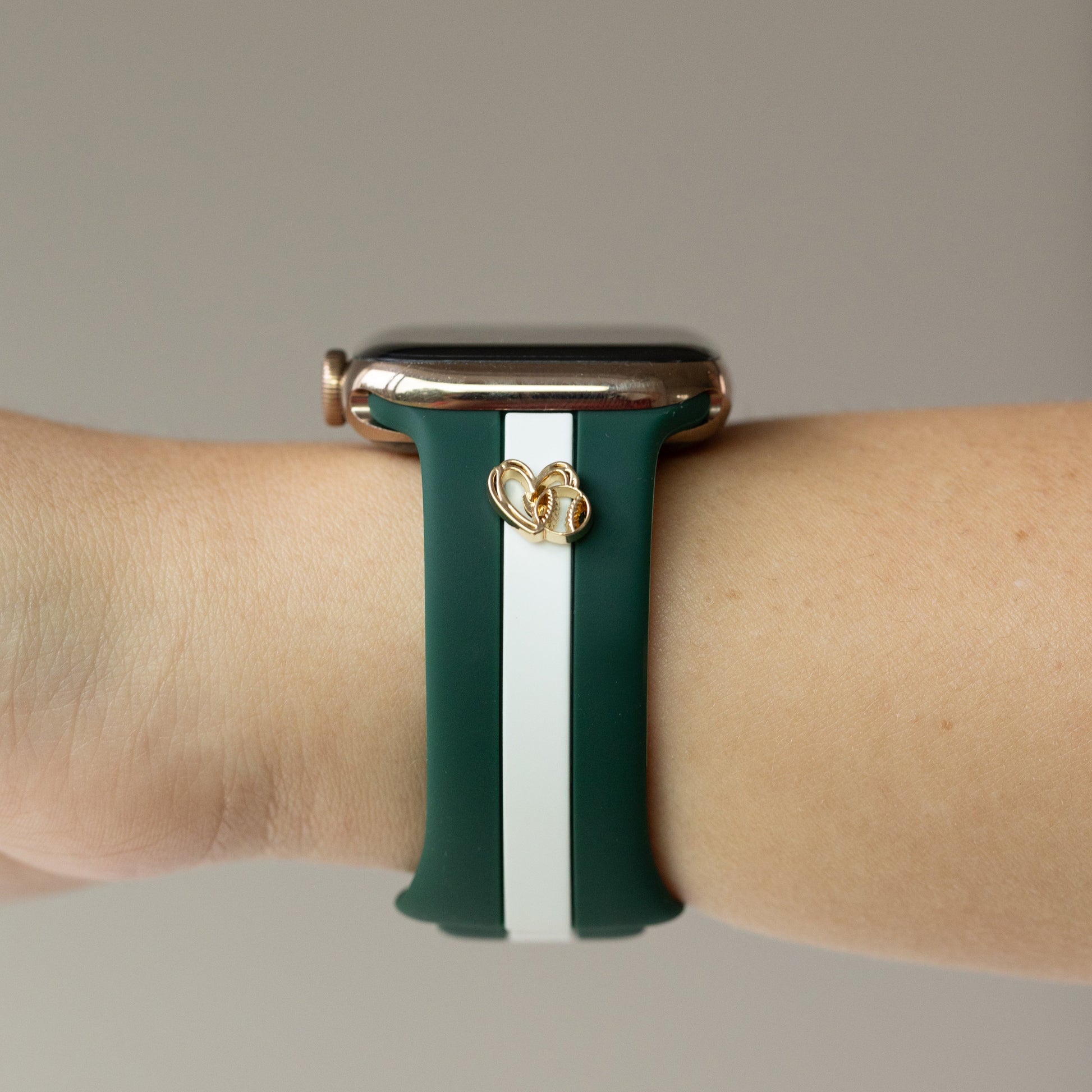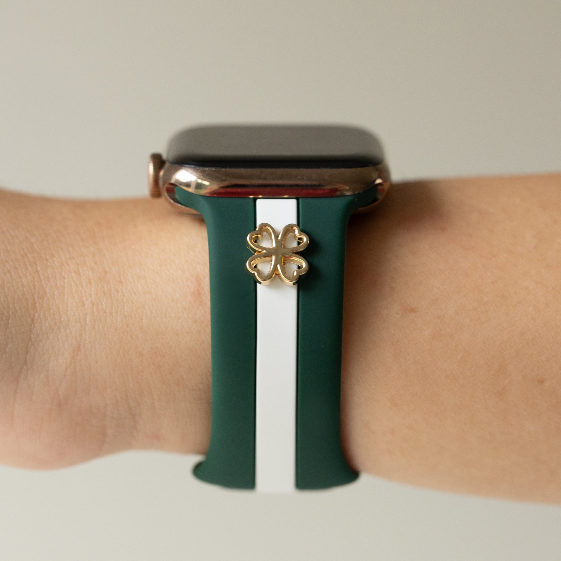 This band is designer-esque, comfiest silicone with the cutest, delicate charm options in gold, rose gold, or silver.