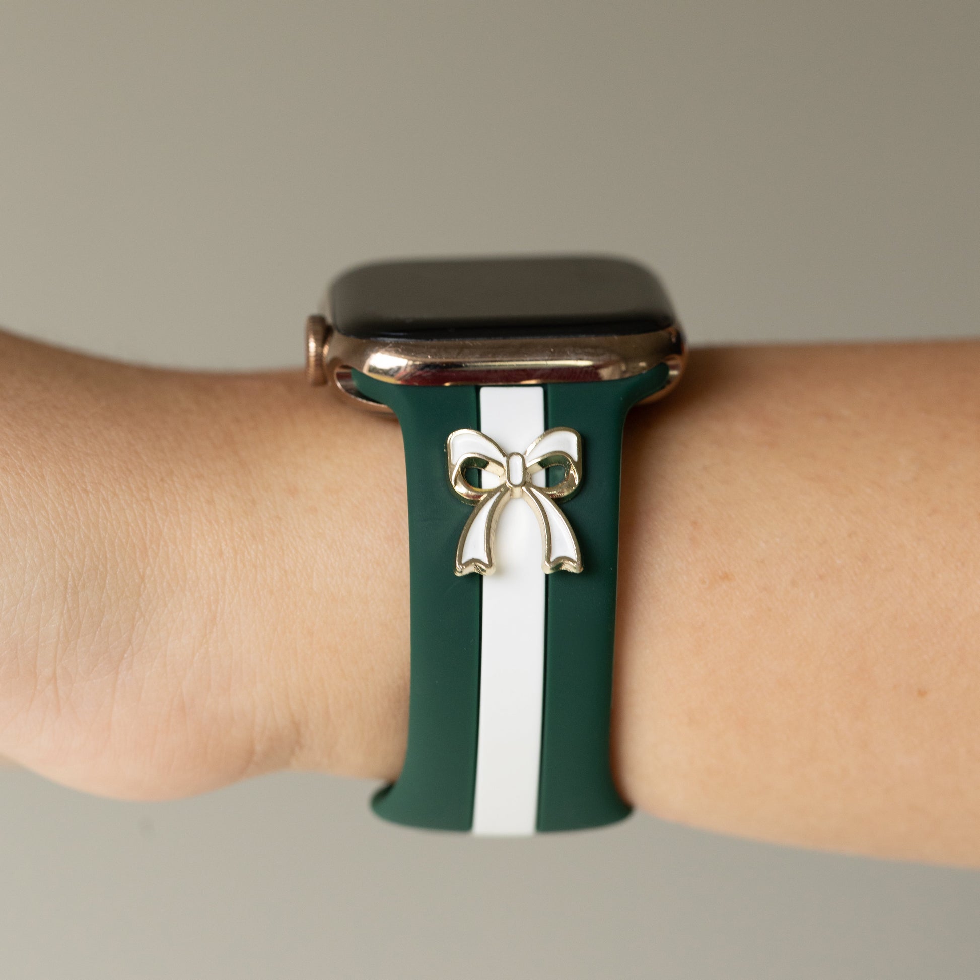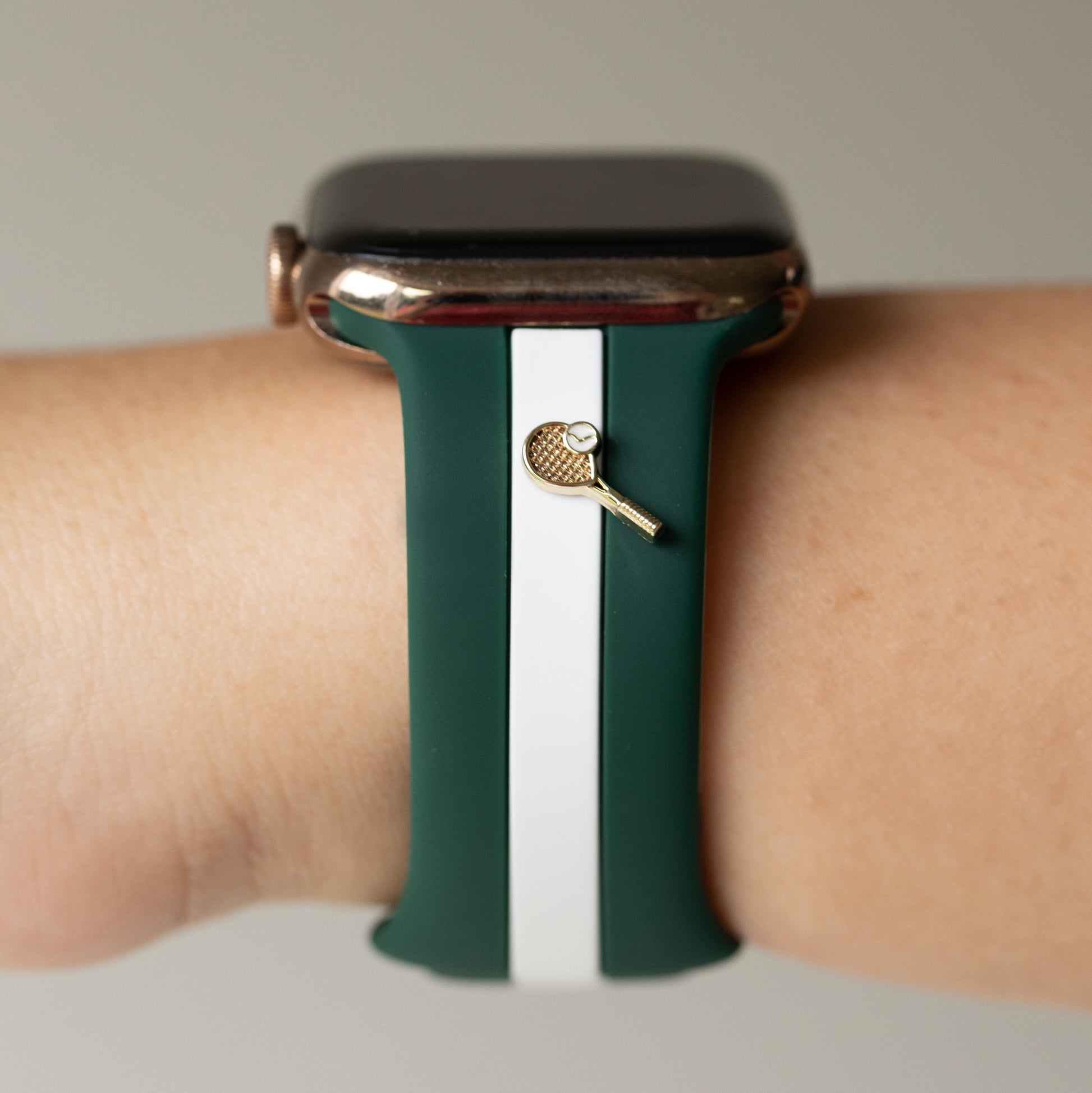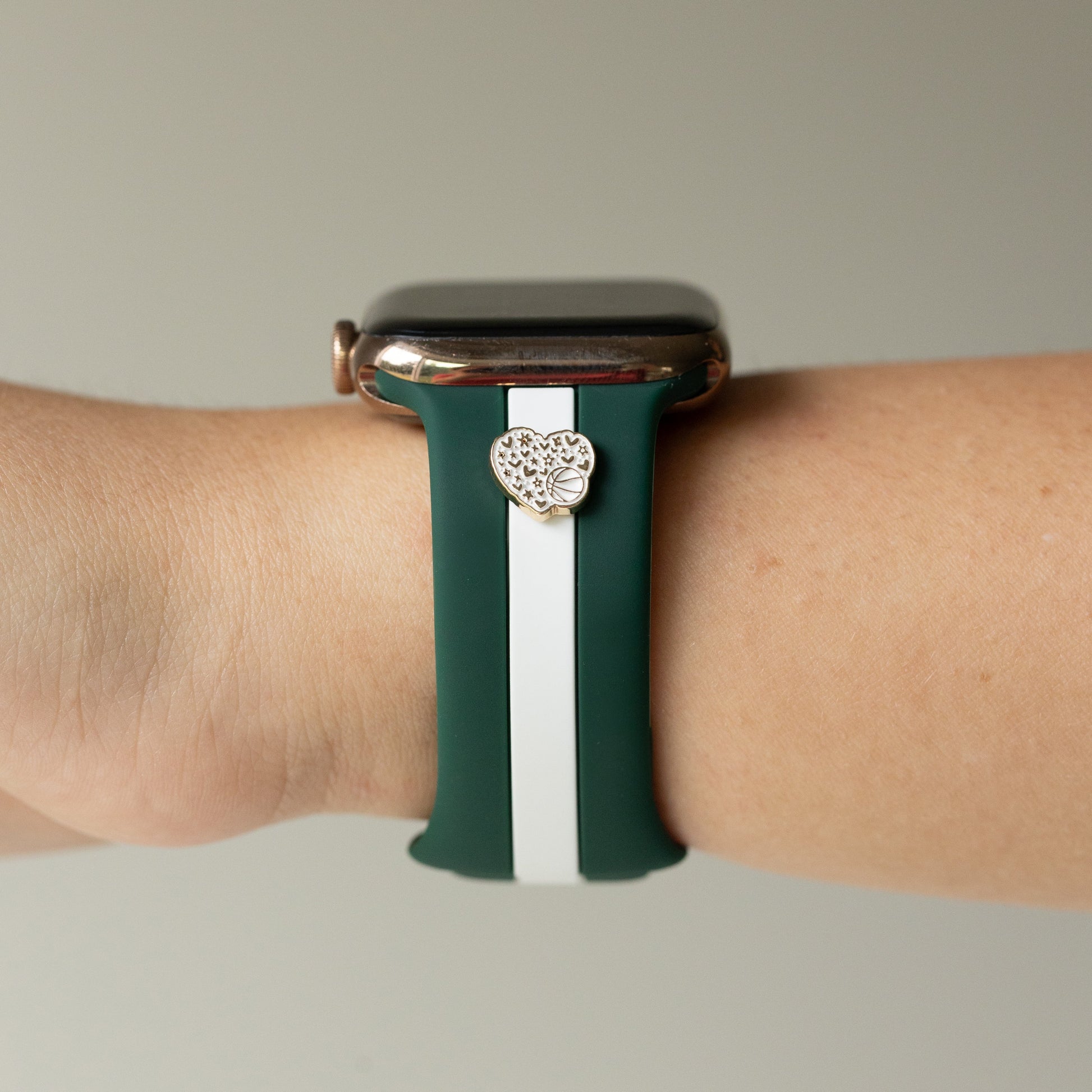 This band is designer-esque, comfiest silicone with the cutest, delicate charm options in gold, rose gold, or silver.