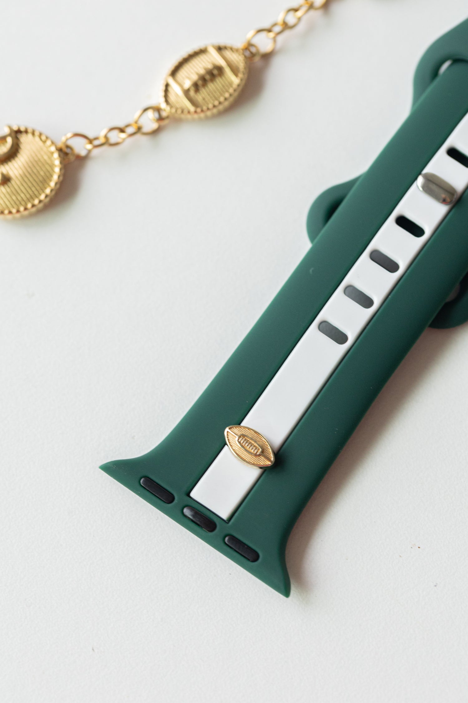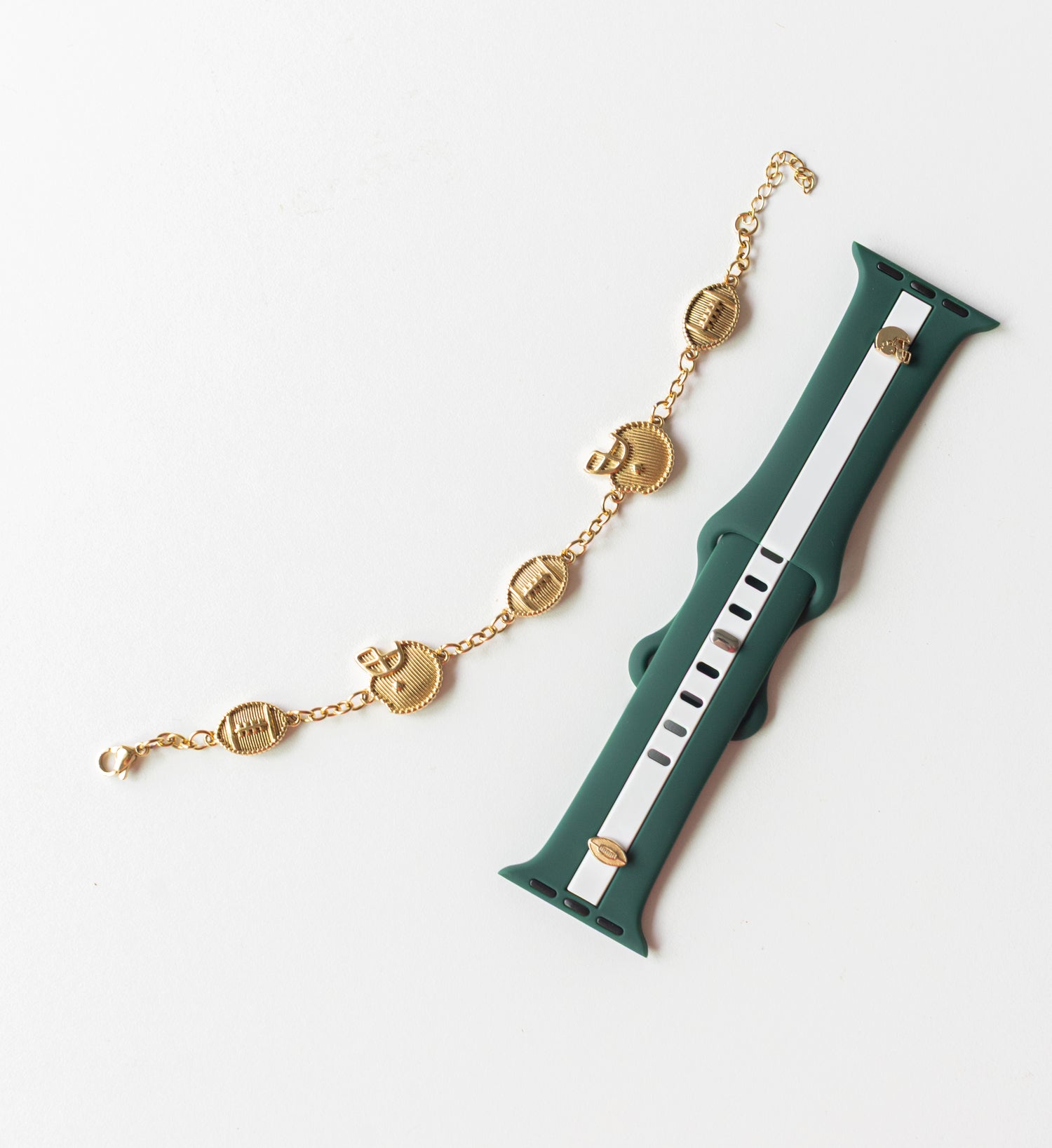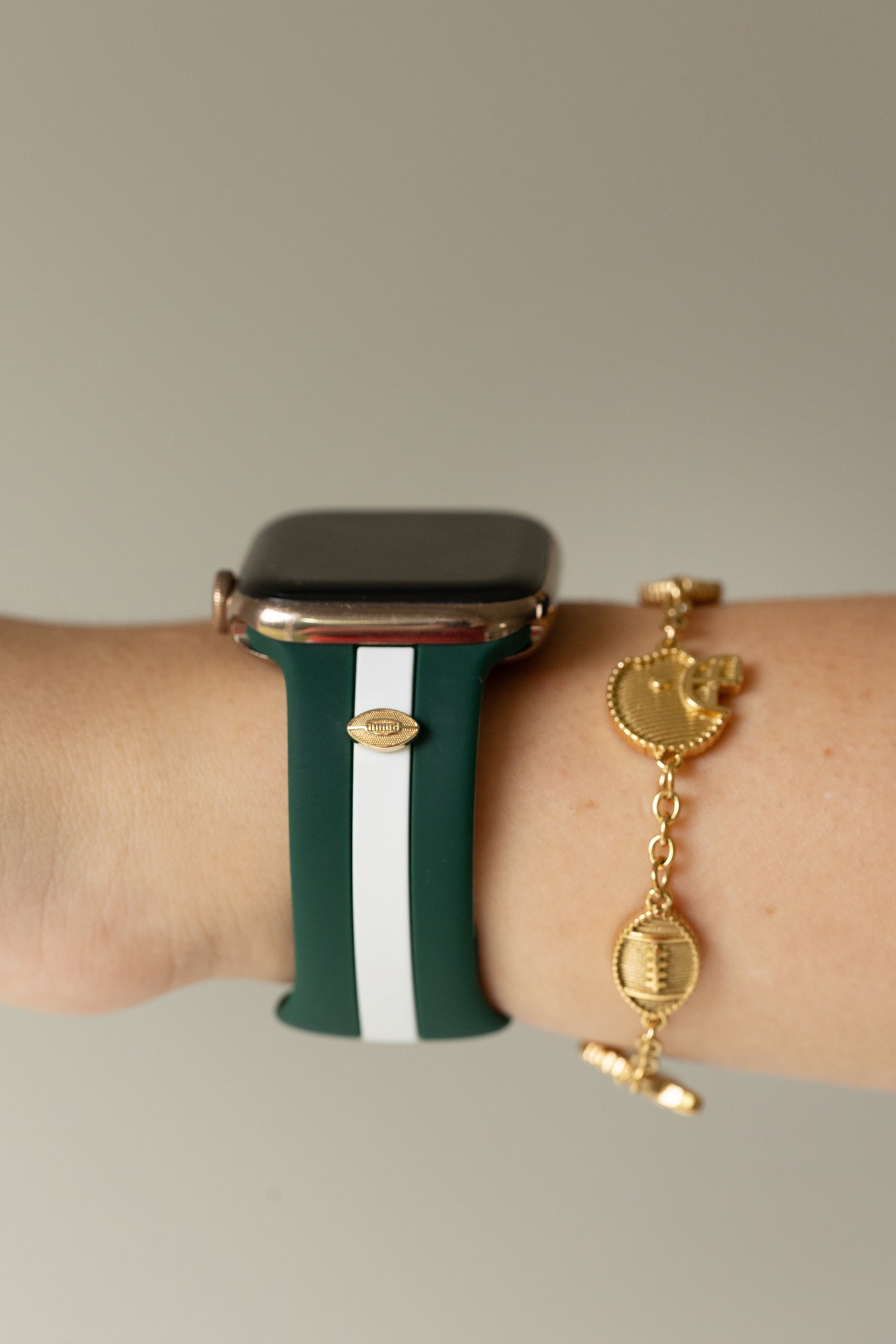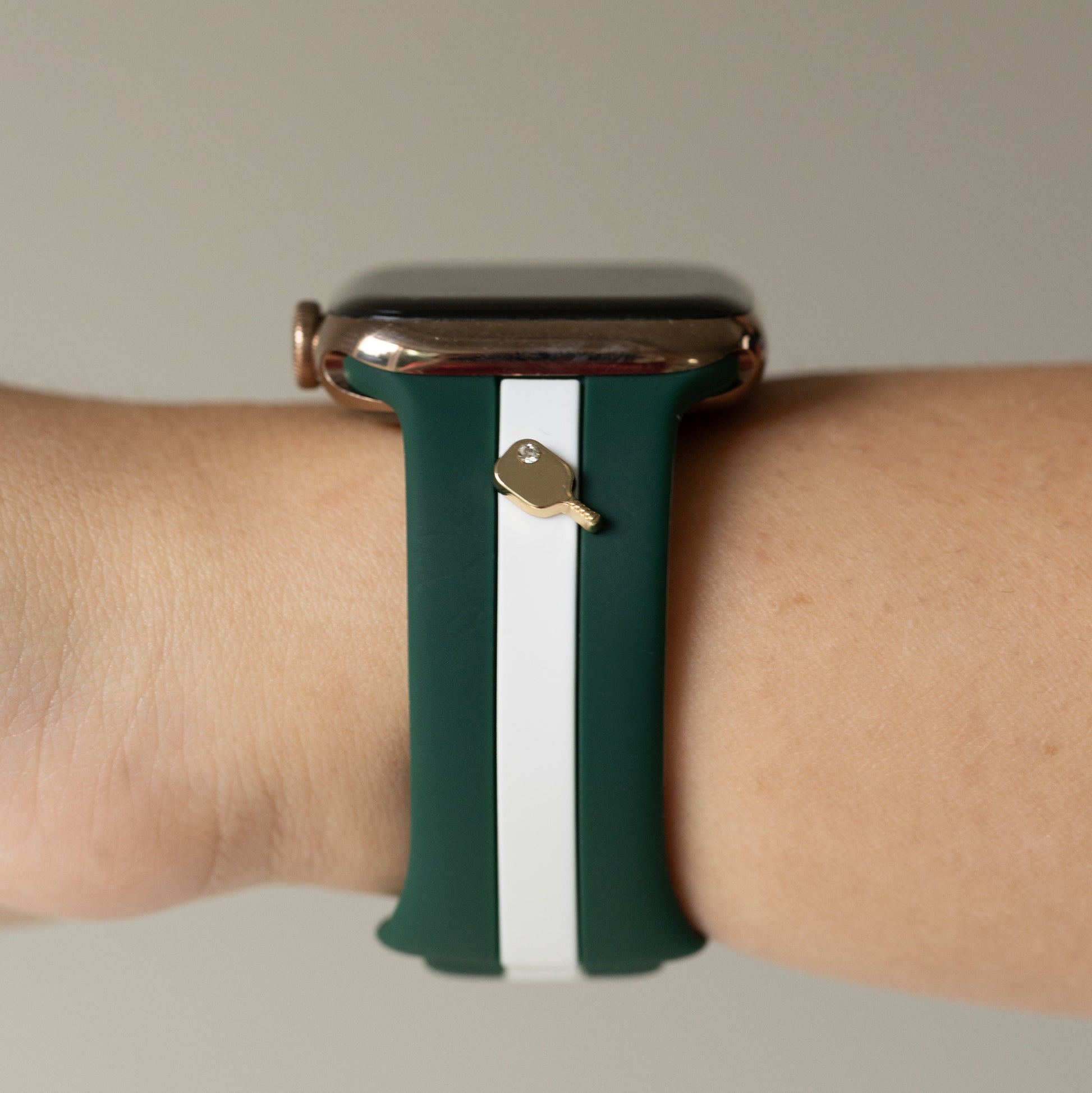 This band is designer-esque, comfiest silicone with the cutest, delicate charm options in gold, rose gold, or silver.