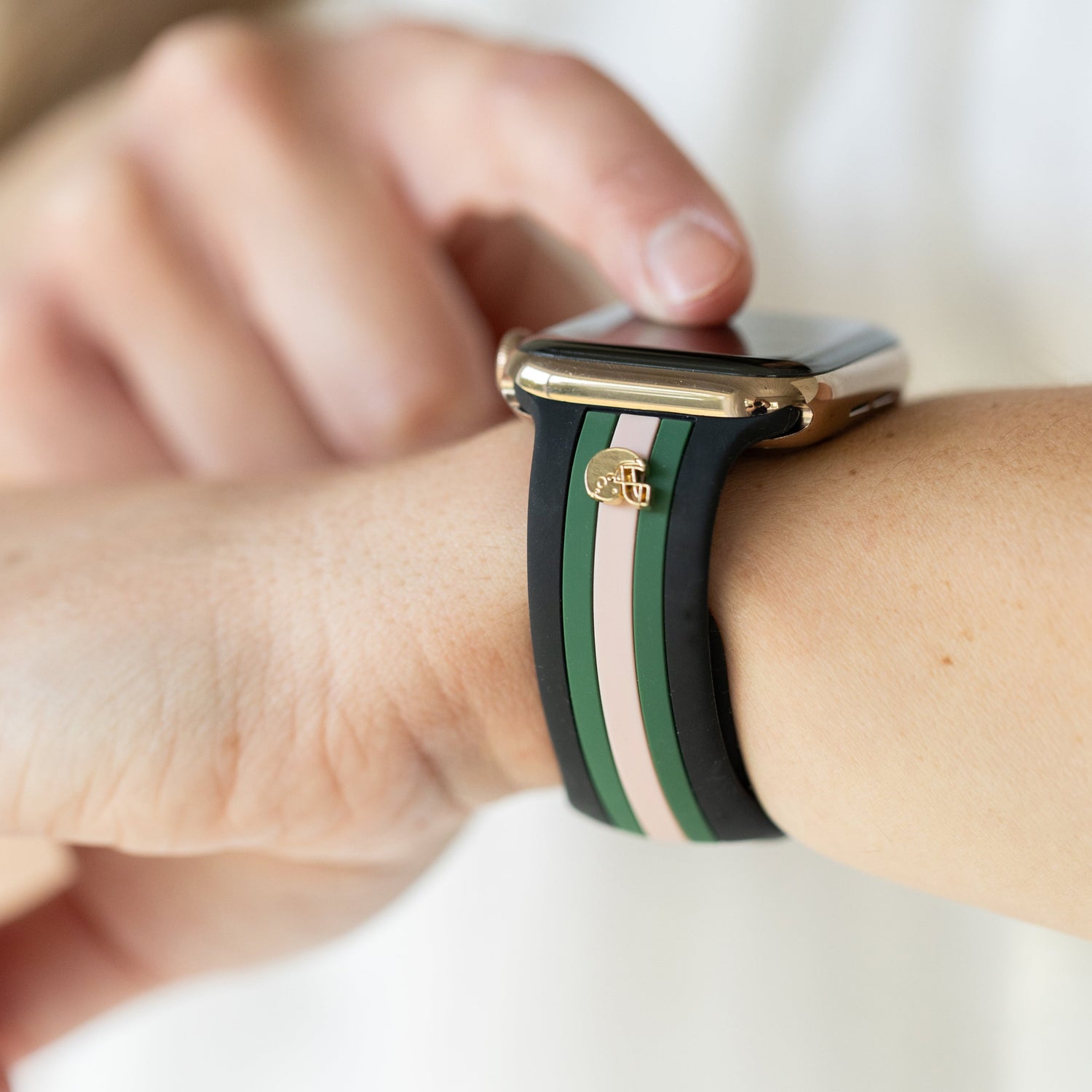 There’s no other way to support your team than with a unique, classy touch on your wrist. Our Football Fever band is a molded dual-color silicone band. It’s a high-quality Apple Watch Band with exquisitely detailed football helmet charms on one side or the cutest footballs. Switch out your Apple Watch Band and support your team!!