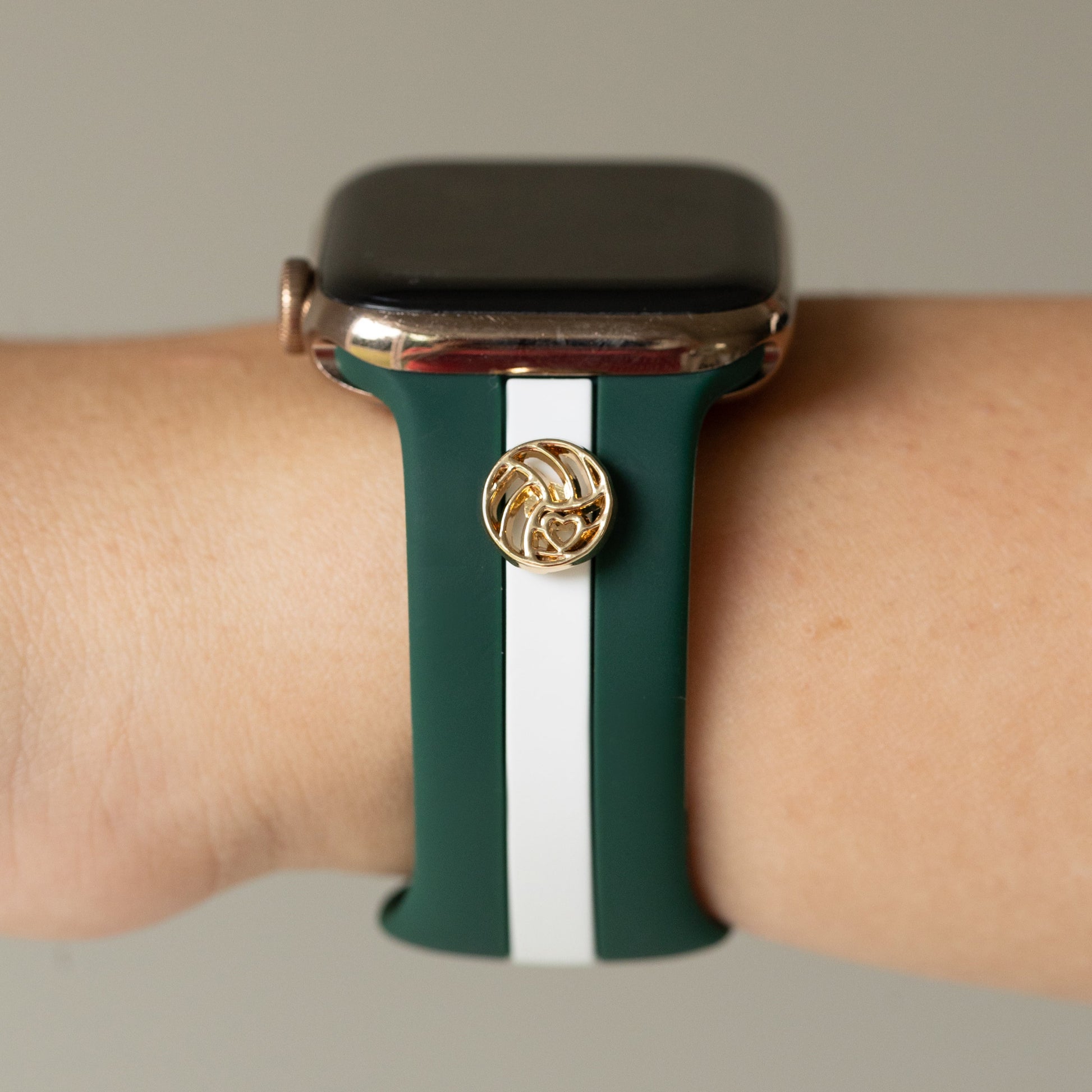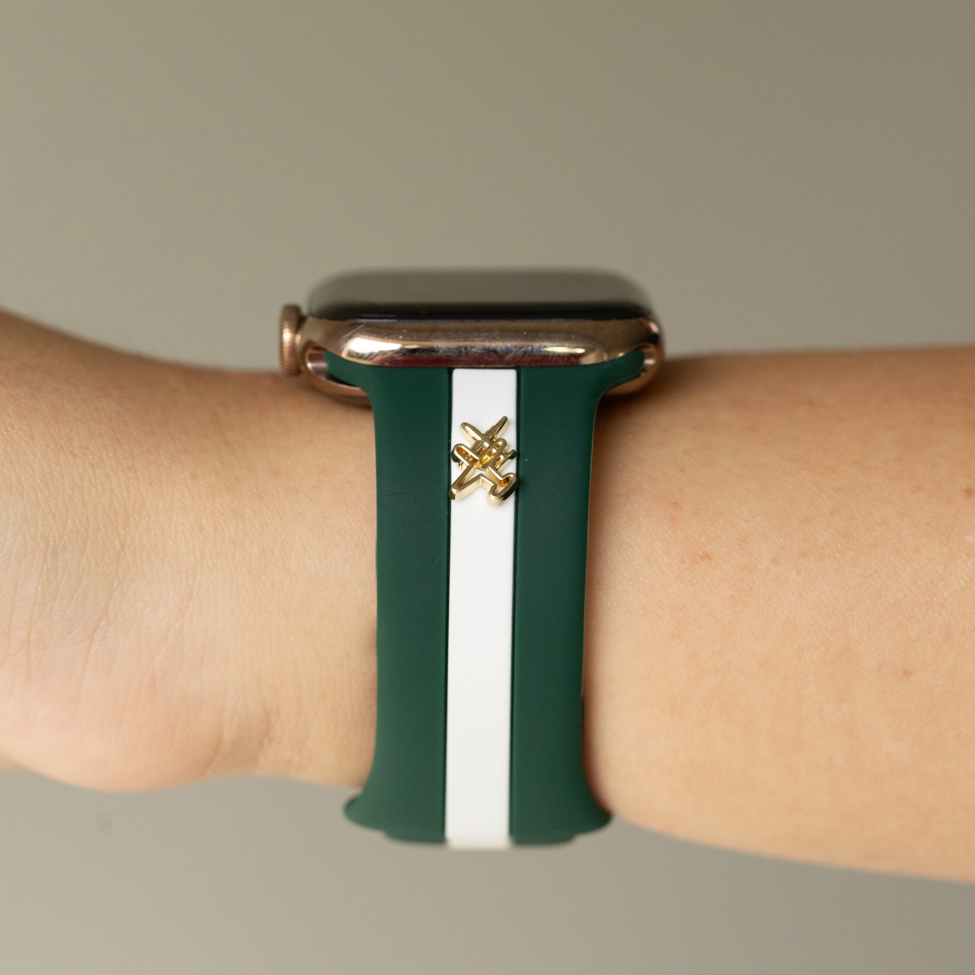 This band is designer-esque, comfiest silicone with the cutest, delicate charm options in gold, rose gold, or silver.