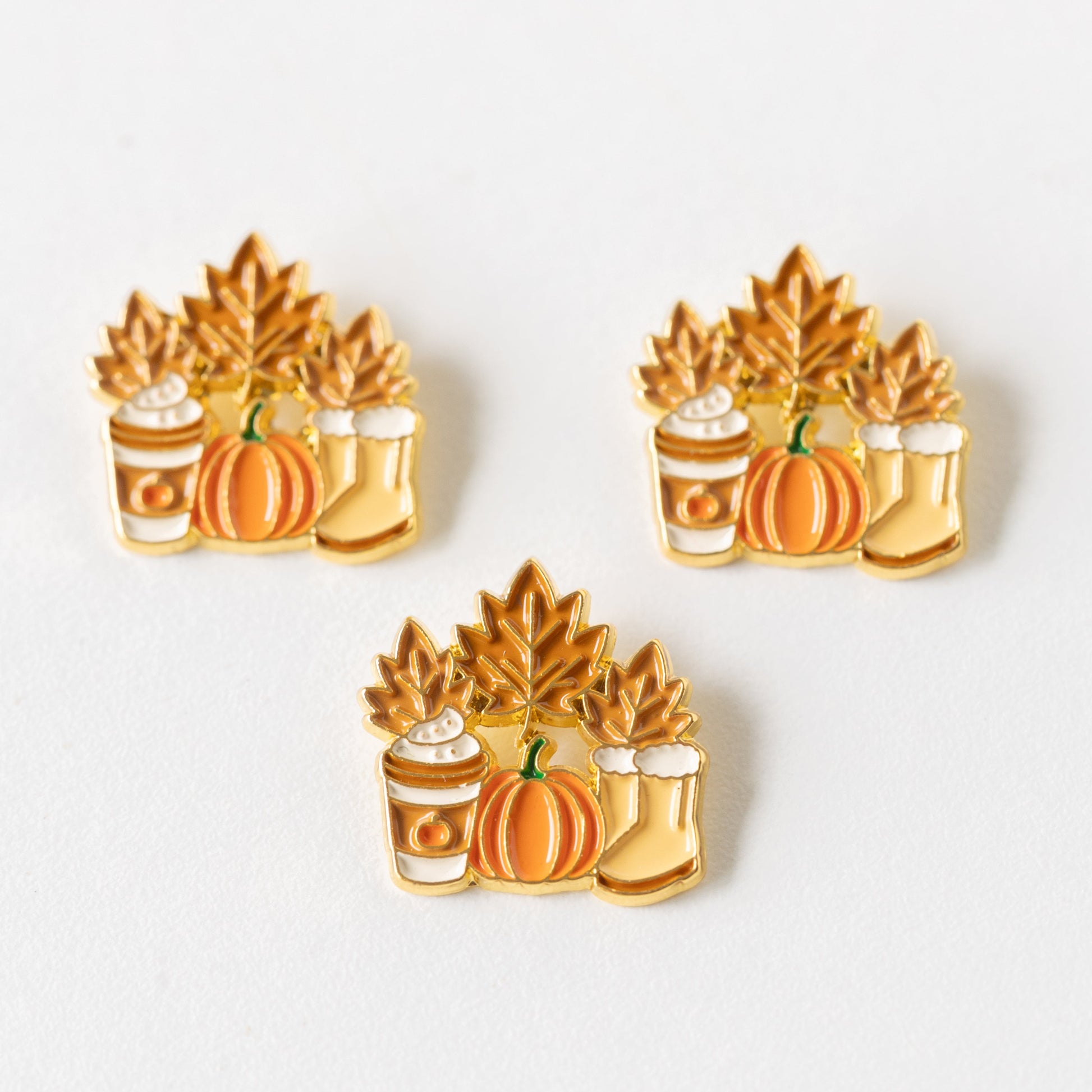 - This set is made up of a pair of Fall themed charms with a screw on back.