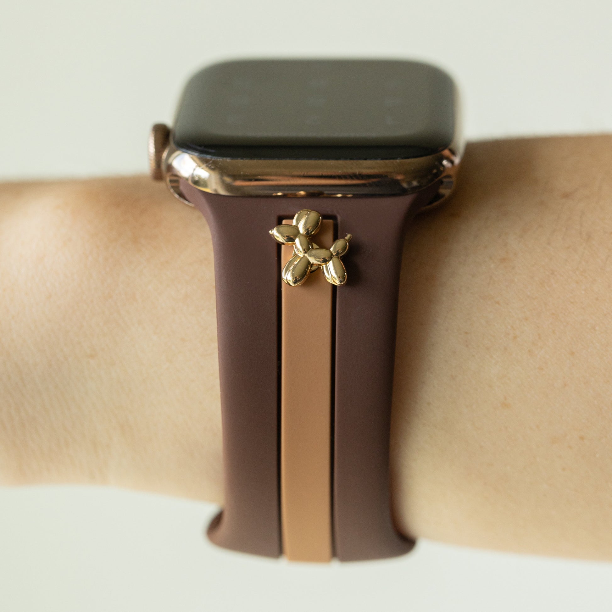 This band is designer-esque, comfiest silicone with the cutest, delicate charm options in gold, rose gold, or silver.