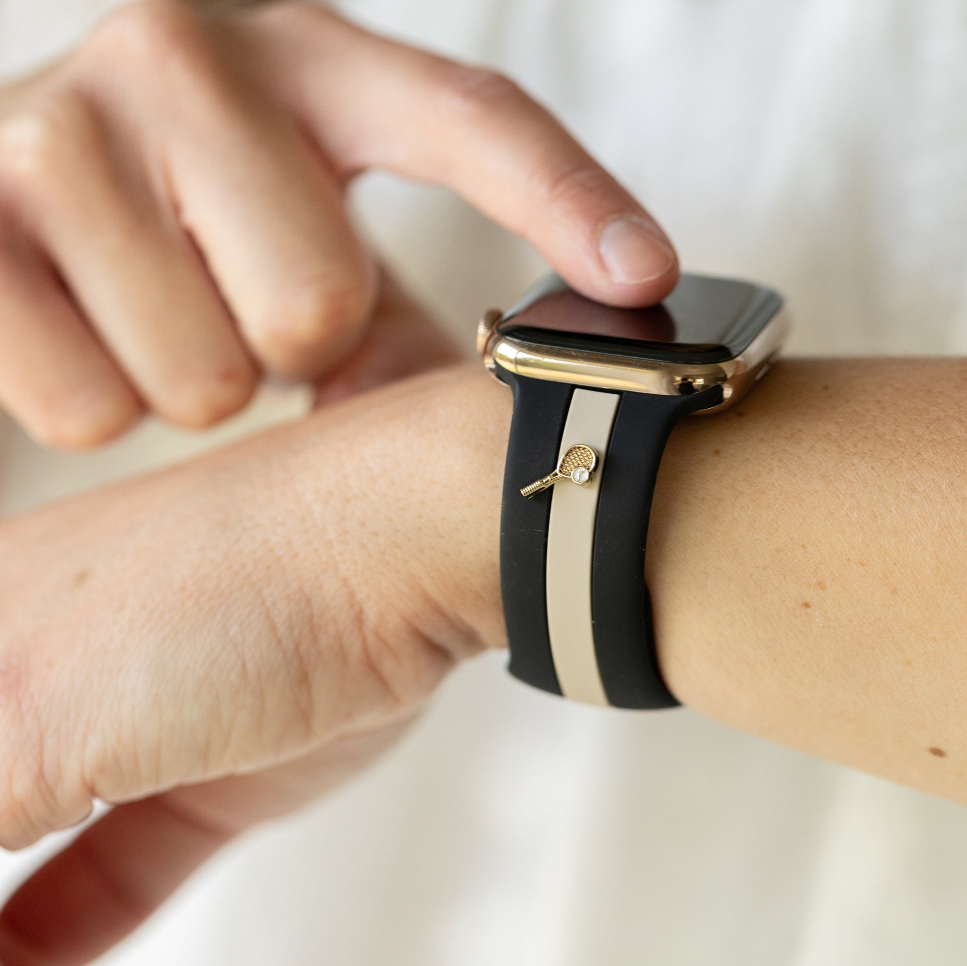 Let's Cause a Racket 🏓 Black and Nude Sand Smart Watch Band